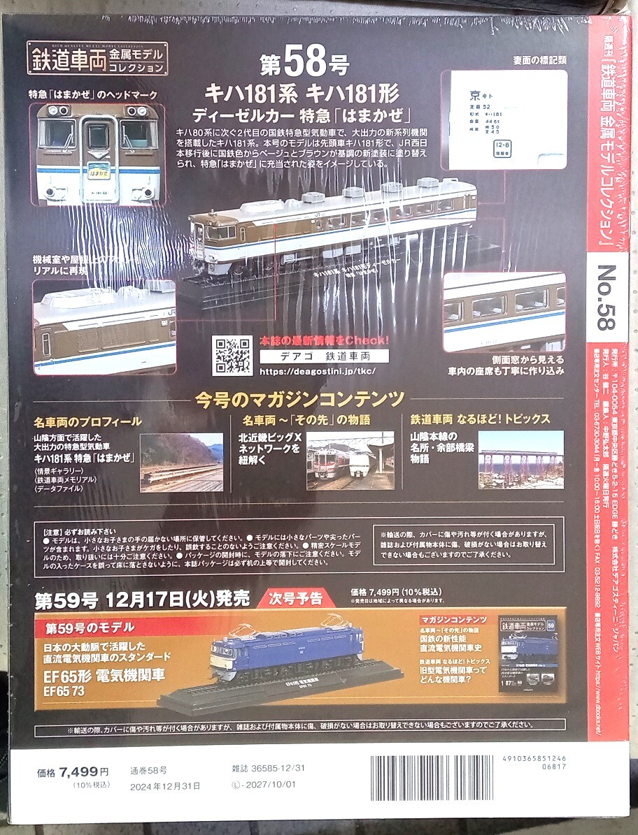☆ディアゴスティーニ 1/87 鉄道車両金属モデル No.58 キハ181系 キハ181形 ディーゼルカー 特急「はまかぜ」☆新品未開封品