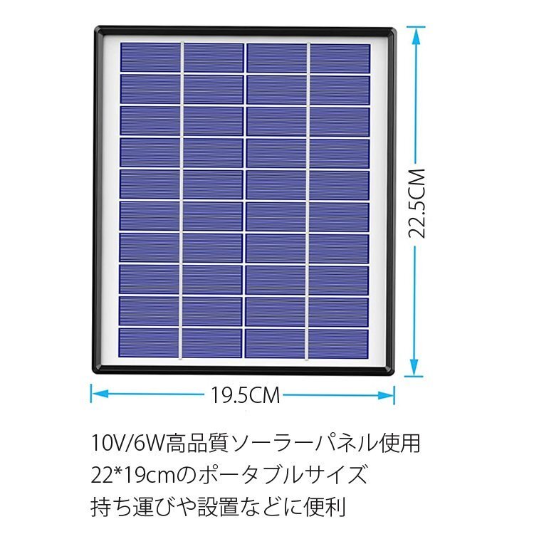 ・ソーラーパネル出力:DC10V 6W