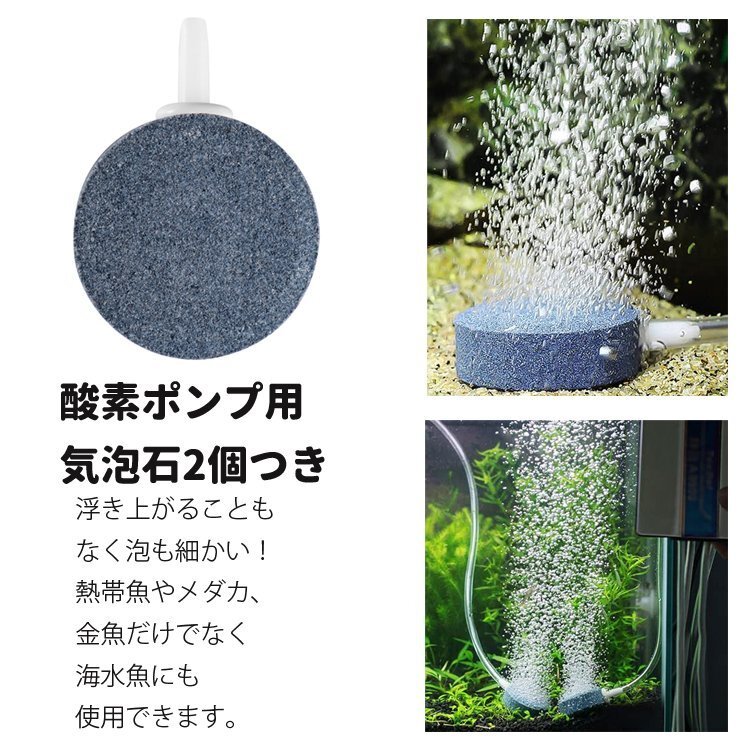6Wの発電パネル使用で短時間に大量の酸素を水中に溶け込ませることができます。エアーストーンを2個付属しており、同時に2つの水槽にも使用することもできます。
