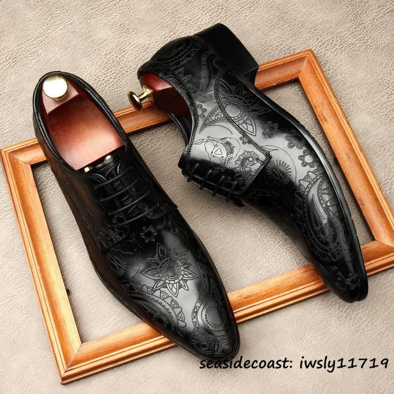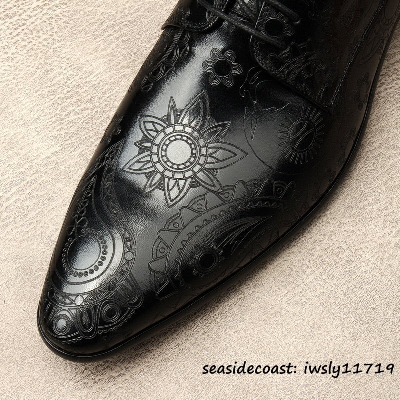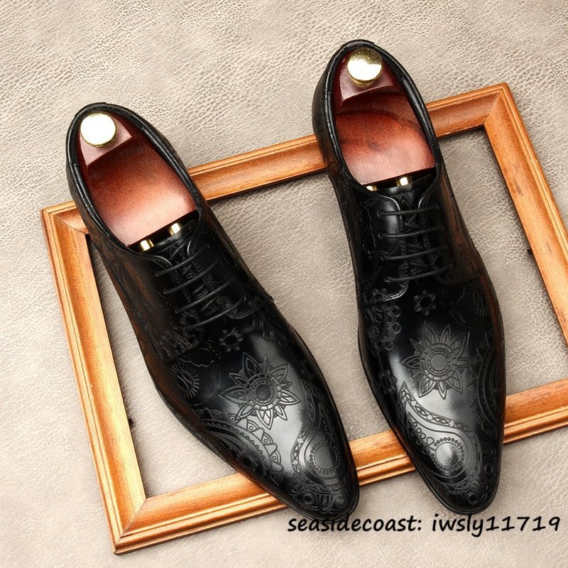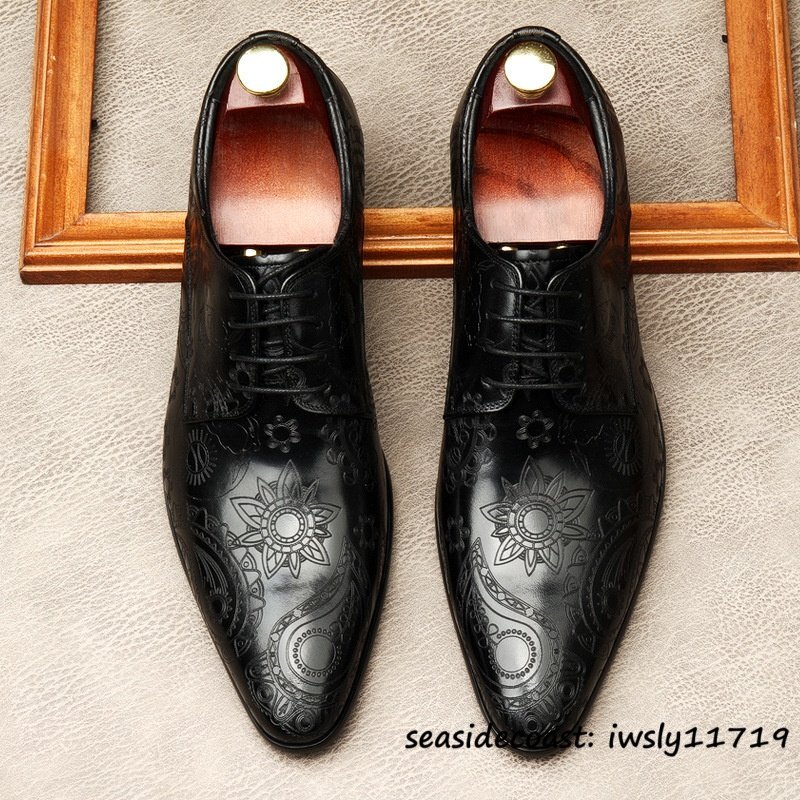 定価11万超★最高級 ビジネスシューズ 本革 レザーシューズ 超希少 職人手作り 総柄 牛革 紳士靴 メンズ フォーマル 革靴 ブラック 25.0cm