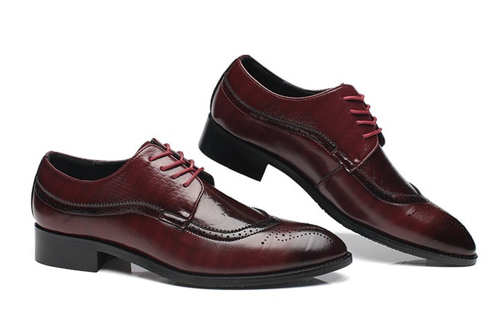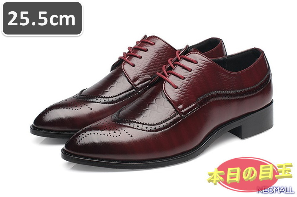 本日の目玉 ☆ メンズ ビジネス レザー シューズ レッド サイズ 25.5cm 革靴 靴 カジュアル 屈曲性 通勤 軽量 【423】