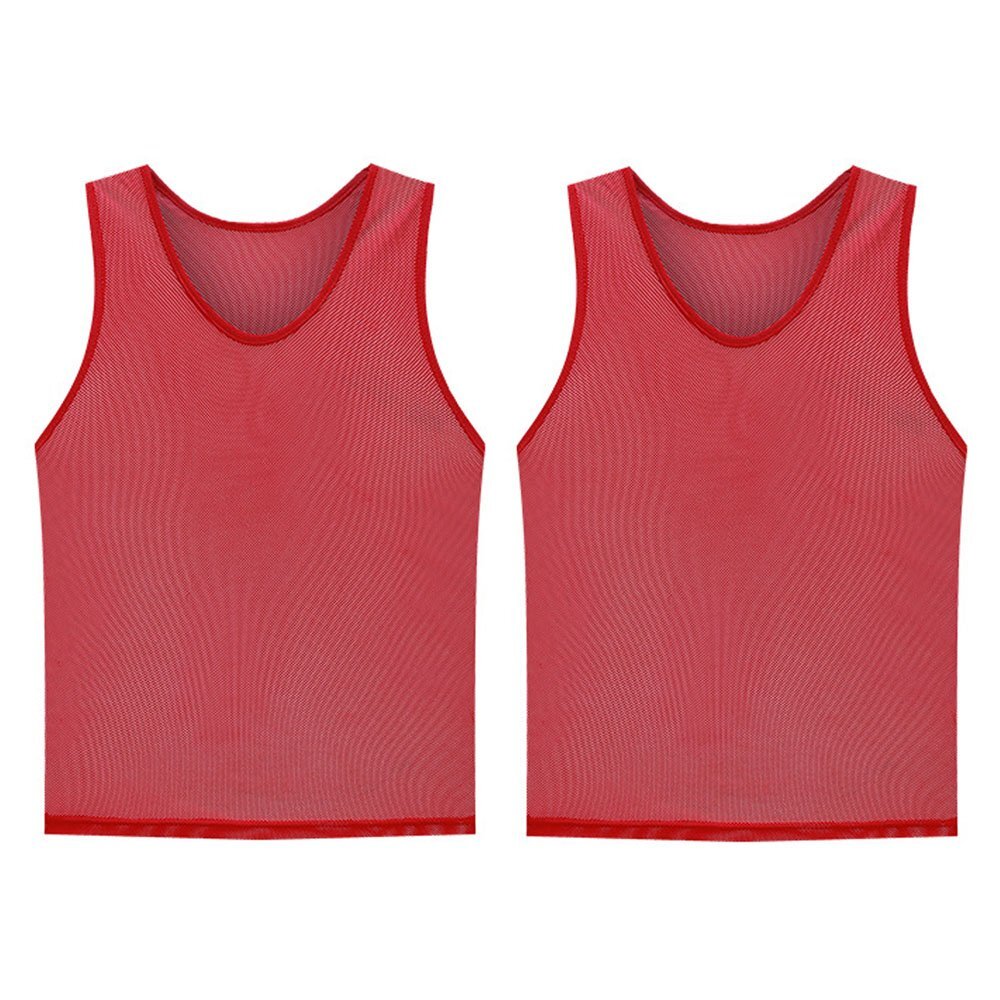 ◆ゼッケンベスト 2枚セット ビブス メッシュ 無地 サッカー バスケ フットサル 運動会 リレー スポーツ イベント ボランティア チーム分け 色分け 子ども用 大人用【キッズ用レッド】BIBVS02S