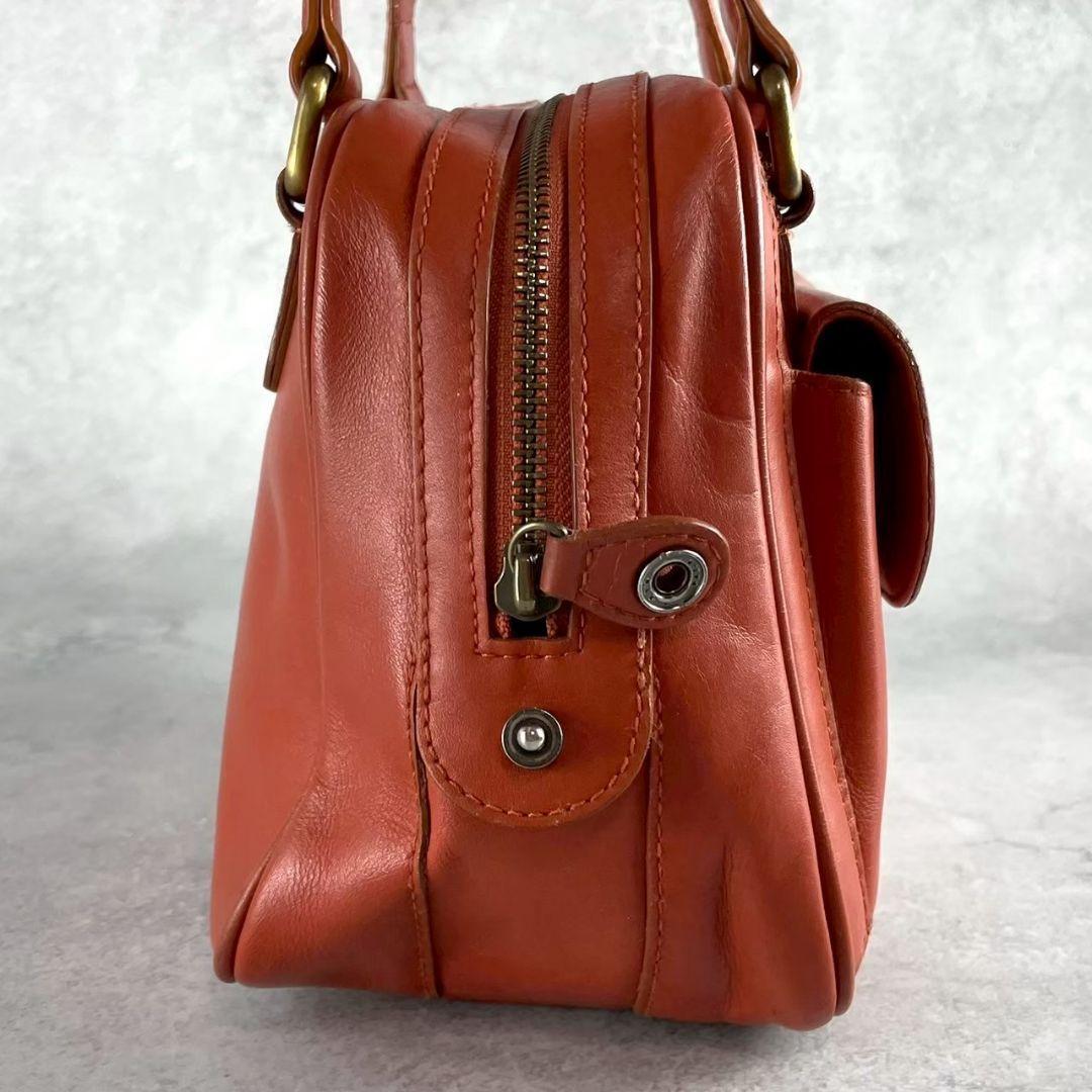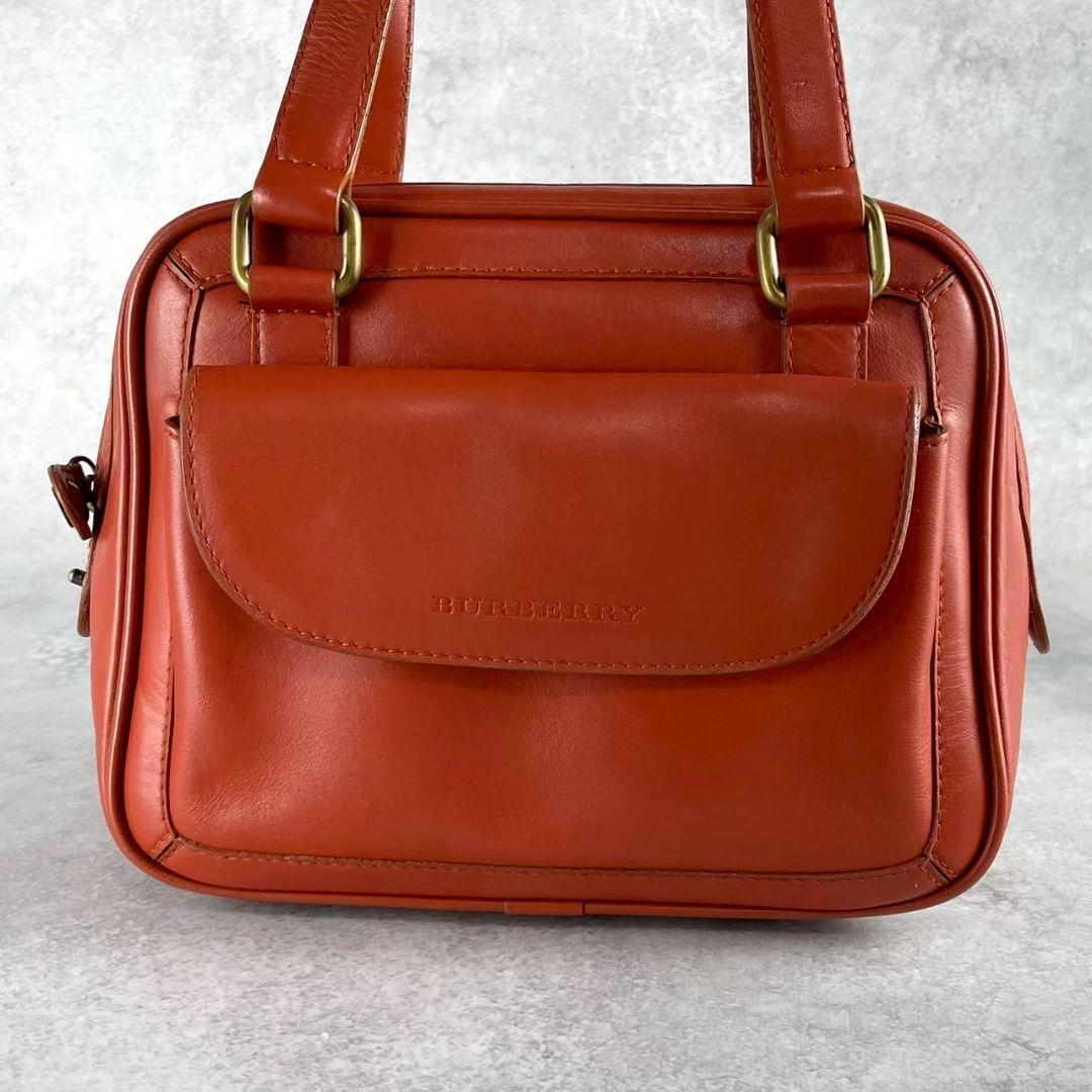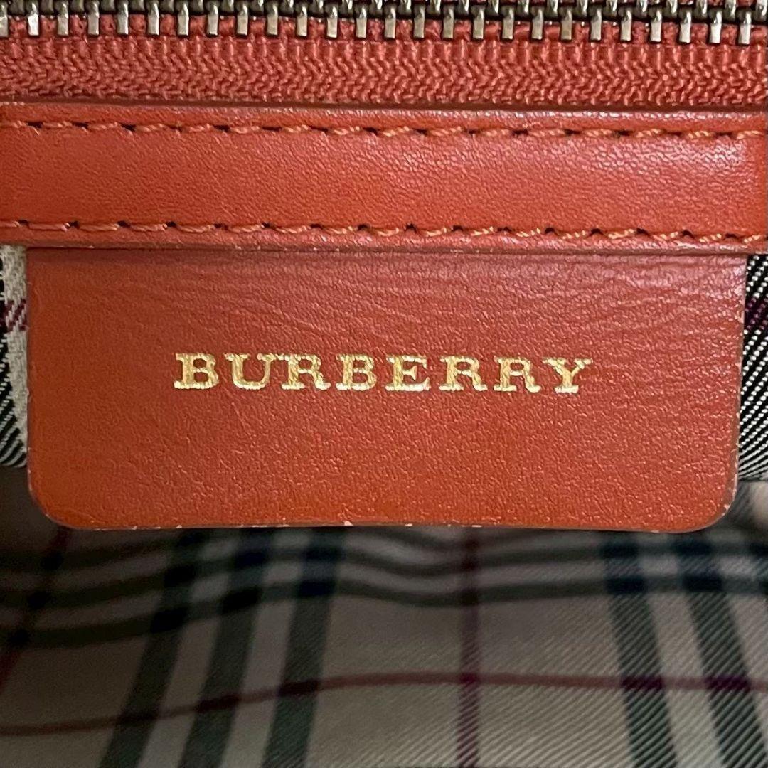 極美品 BURBERRY バーバリー ハンドバッグ ミニボストン ノバチェック レディース メンズ ユニセックス オレンジ系 レザー 本革