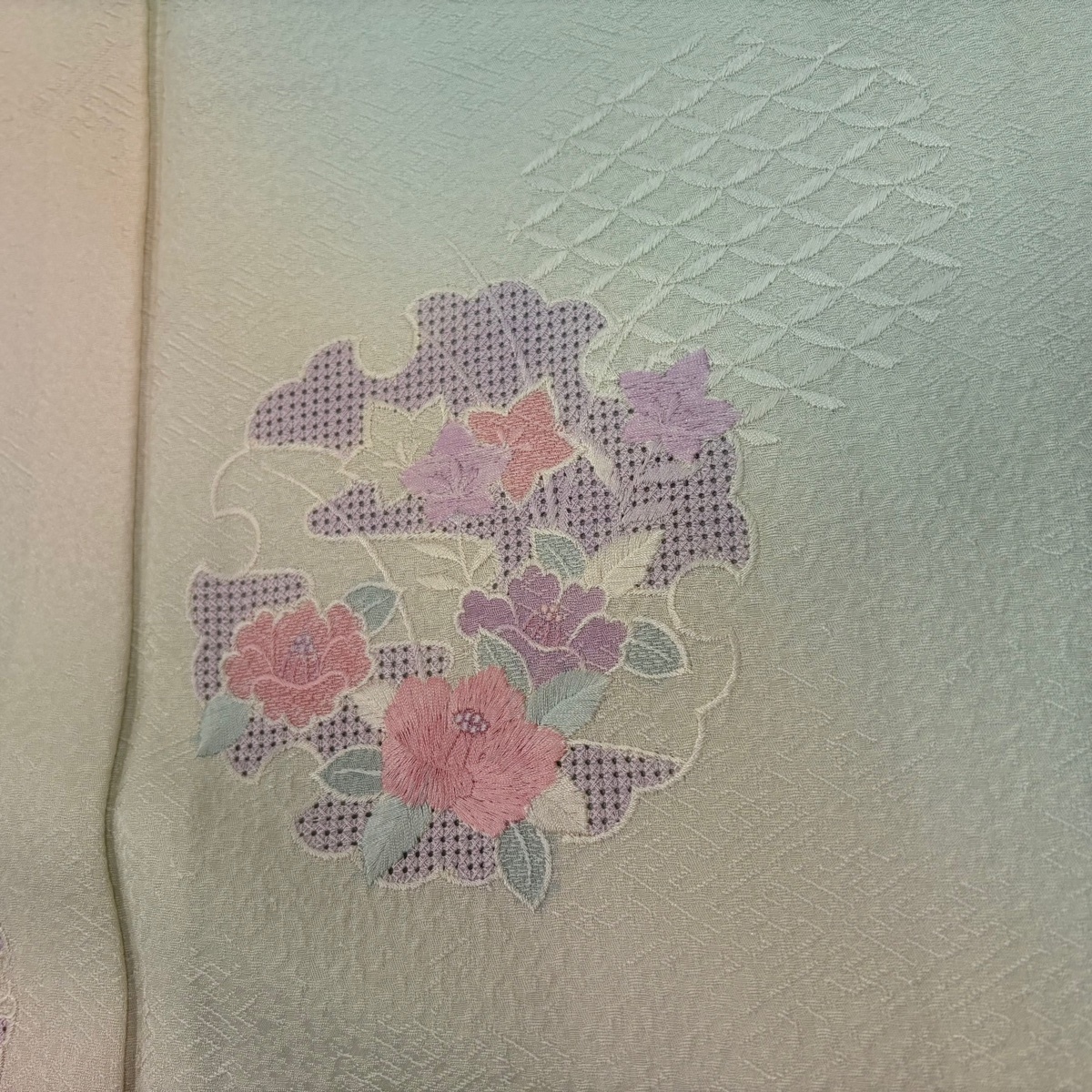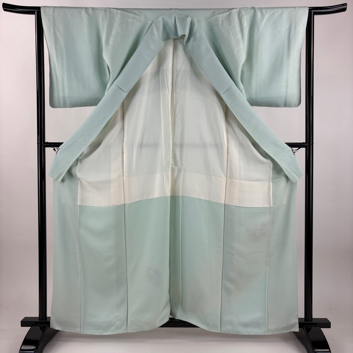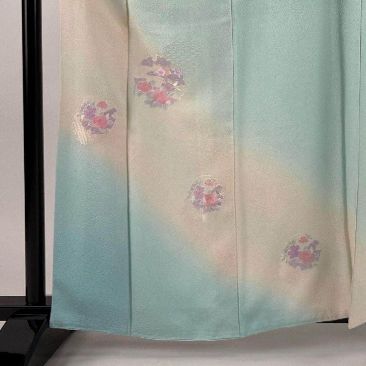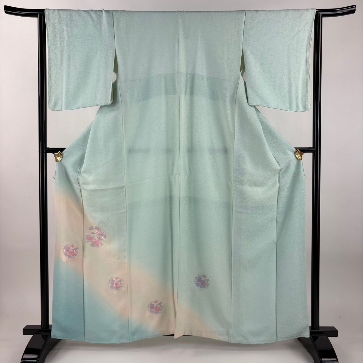 | 付下げ 秀品 雪輪 地紋 刺繍 ぼかし 水色 袷 身丈161.5 裄丈64 M 正絹 【中古】 |