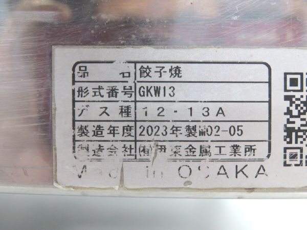 ◆伊東金属 2023年◆ガス餃子焼器 GKW13 都市ガス 540×455×310 サイズ:W410+130×D320+135×H310mm ガス種:都市ガス 鉄板サイズ:W180×D300×H45mm×2 定 価:113,000円 出品にあたり動作確認・クリーニング済みです。 多少の傷・使用感等がありますので、予めご了承ください。 中古品ですので、画像をよくご確認の上、ご理解頂ける方のご入札をお願いいたします。 神経質な方はご入札をご遠慮ください。 気持ちの良いお取り引きにしたいと思いますので、ご不明な点等ございましたらお気軽にご質問ください。 | |