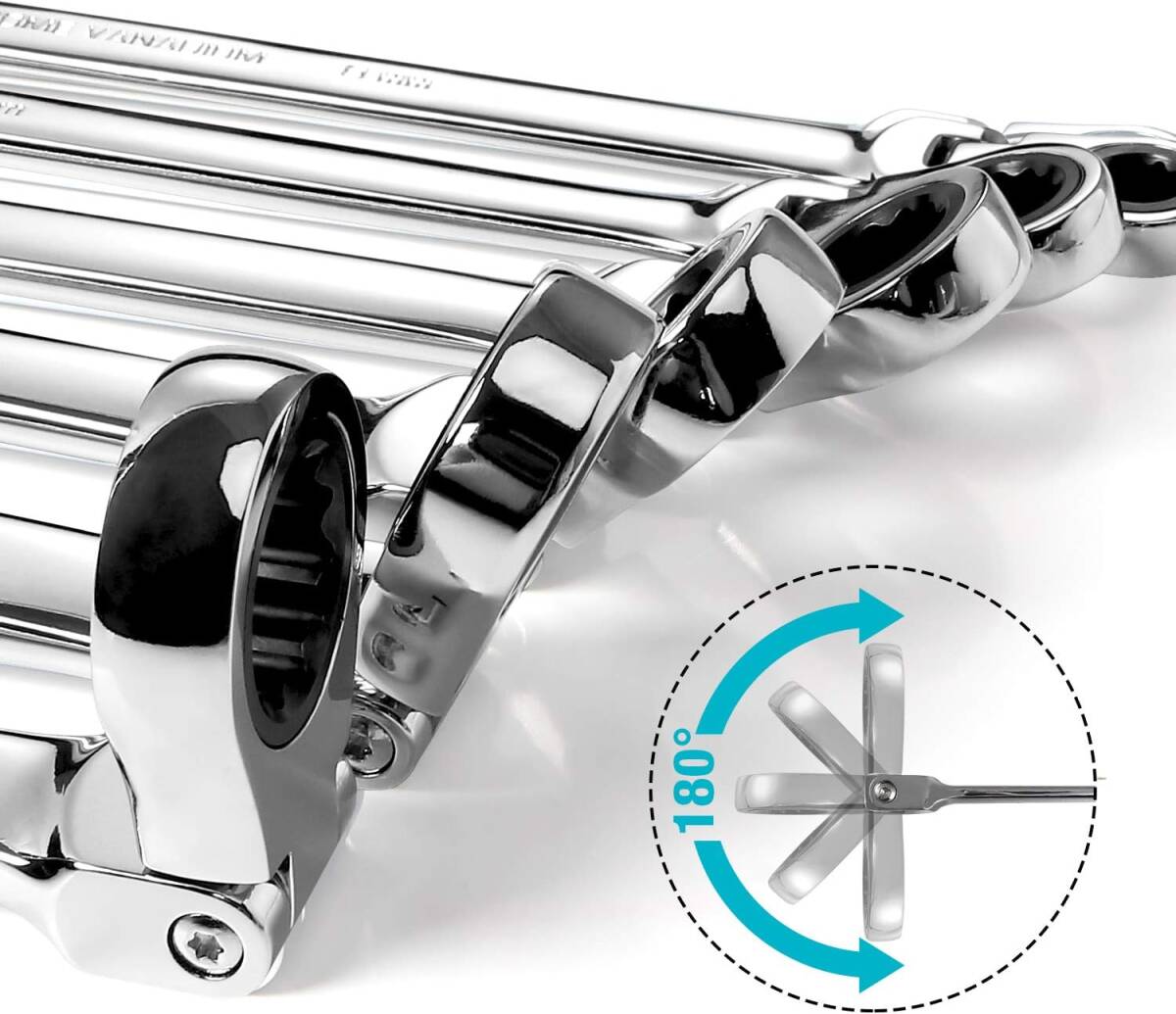 使いやすい フレックスラチェットレンチ ロングタイプ 8~19mm 72ギア 両