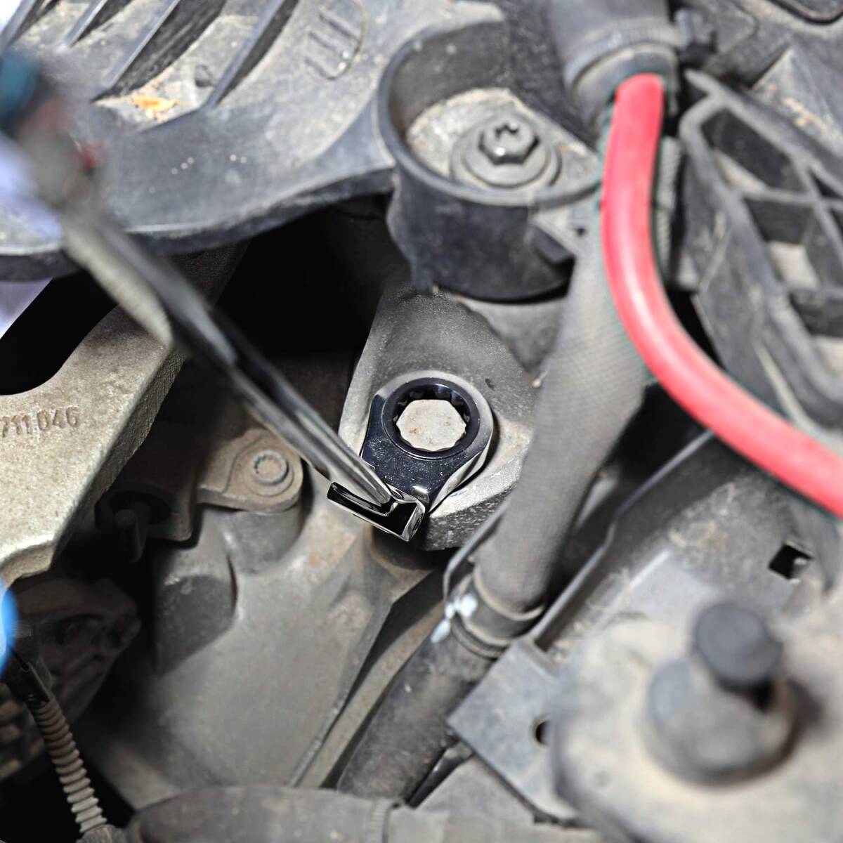 なお、12角サーフェスを採用しているためボルト・ナットの角を舐めにくく、使いやすさが特徴です。また、番手が本体に刻印されており、一目でサイズが分かる設計になっており、首振り型で角度調整も可能です。72ギアで送り角度5°を実現し、ストレート型からオフセット型まで幅広く使用可能となっております。