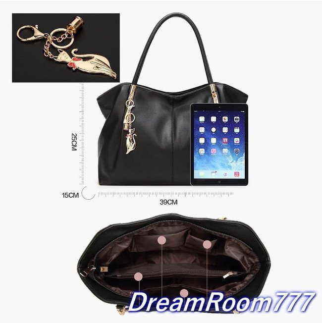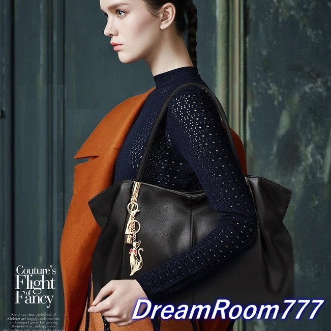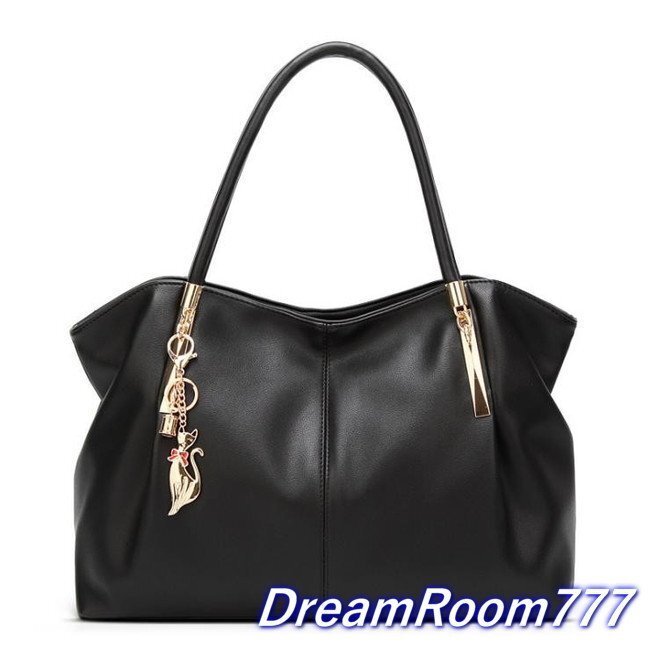 classic チャーム付 大きめ トートBAG【ブラック】ハンドバッグ ショルダーバッグ 防水 K-061-3