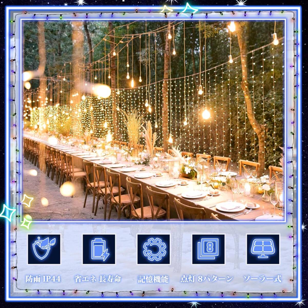 イルミネーションライト ソーラー 200球 20m ドレープライト ストリップライト クリスマス ストレート led おしゃれ 庭 ガーデン