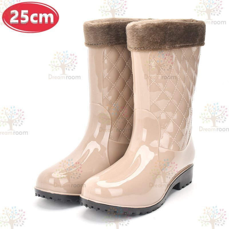 お洒落 キルティング レインブーツ ボアインナー付 【ベージュ 25cm】 長靴 レディース 女の子 梅雨 K-312