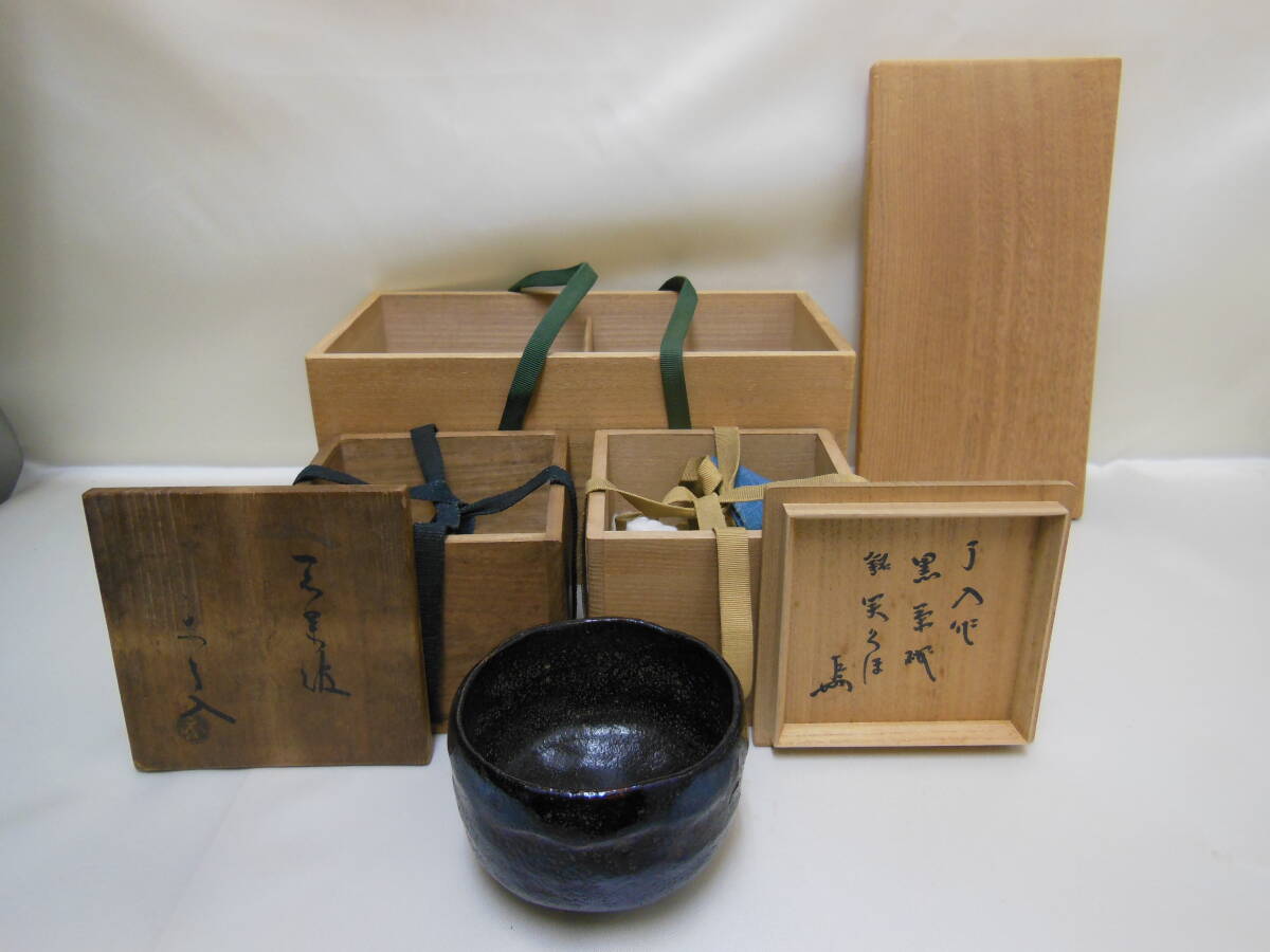 54 即中斎 書附 楽 了入 作 黒茶碗 「えくぼ」