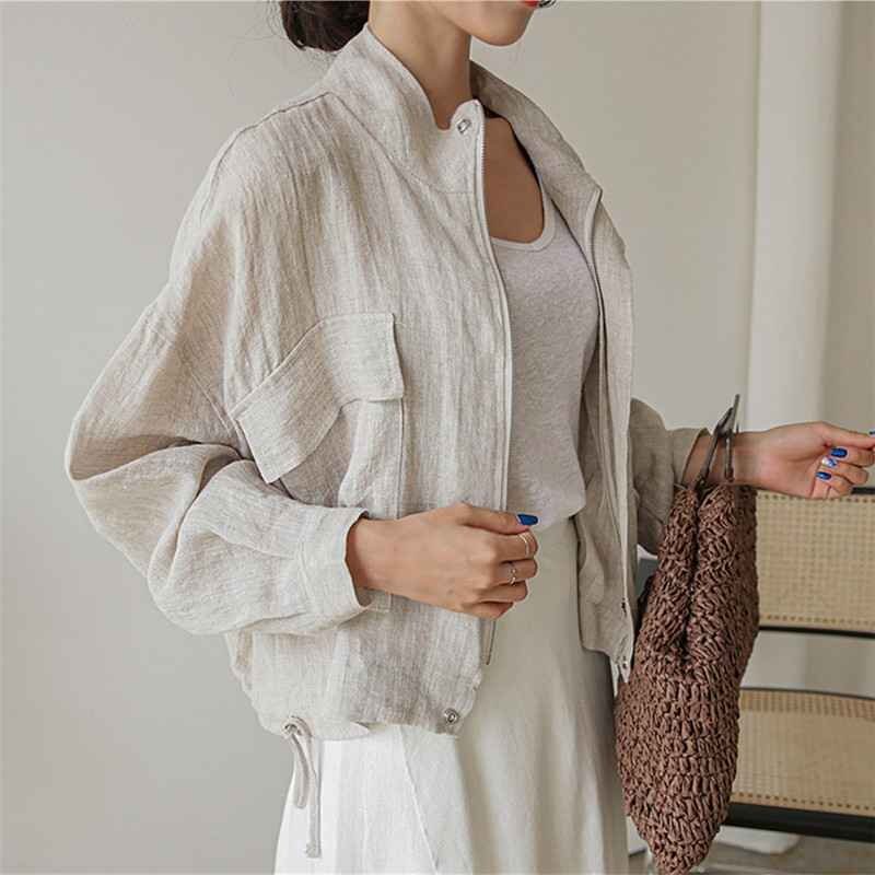 トレンド感満載、綿麻の清涼感のある素材を使用。大きめのポケットデザインでサファリ感ありのサマーミリタリージャケットです。