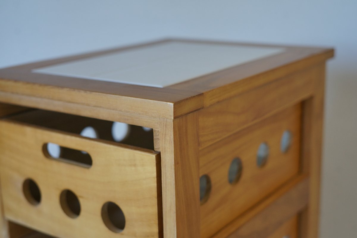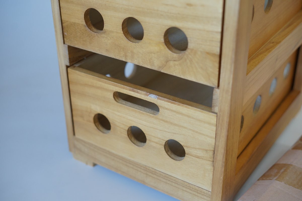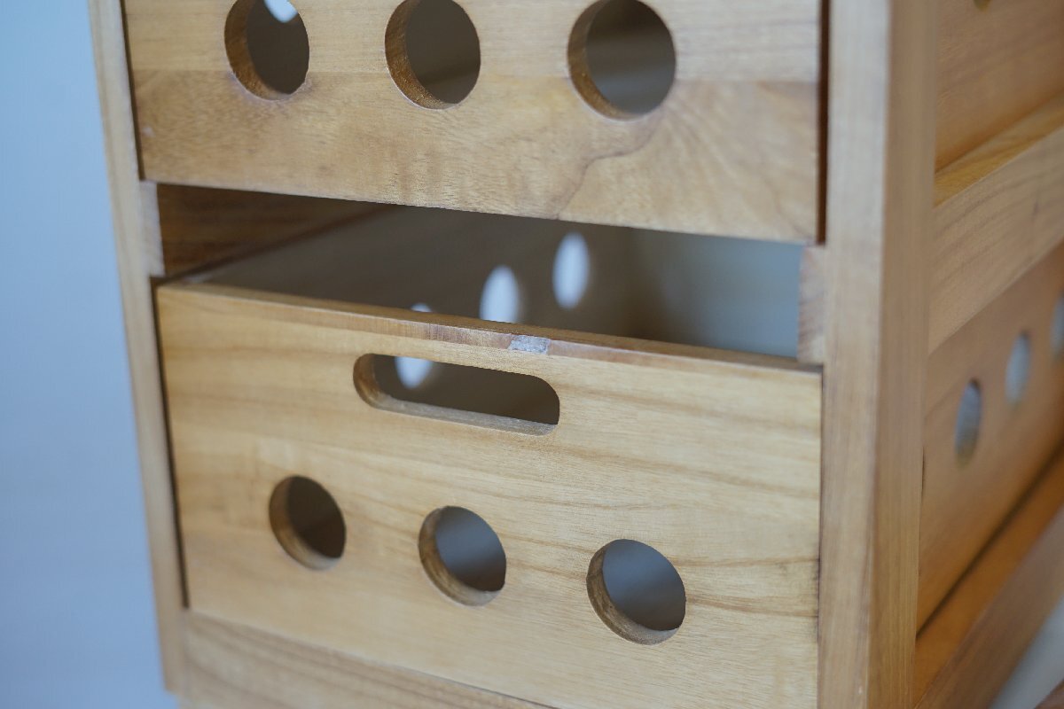 ・引き出しには穴がたくさん空いていて通気性に優れています。