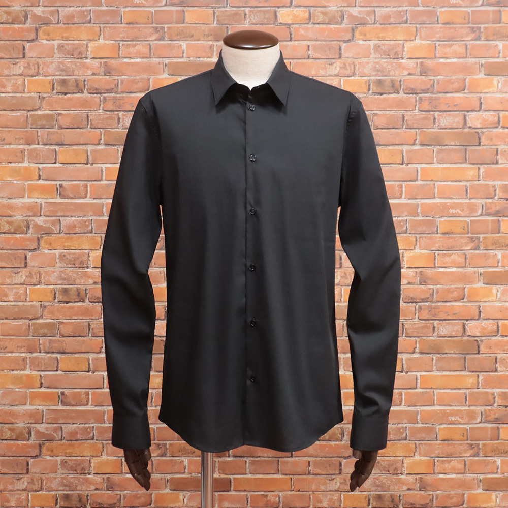 1円/GAUDI/Lサイズ/長袖シャツ C521GU45002 イタリア製 綿混 ストレッチ 無地 薄手 今期 ガウディ 新品/黒/ブラック/mc301/