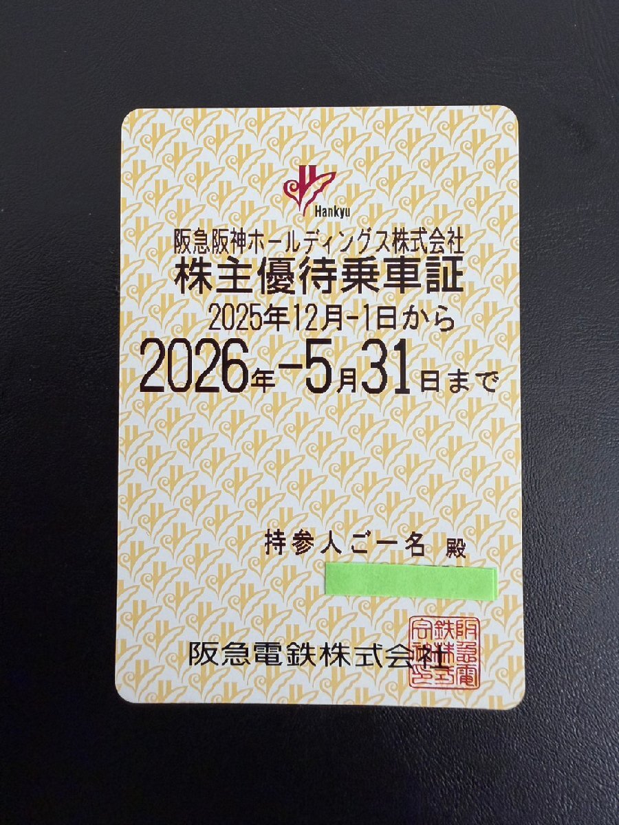 阪急電鉄 株主優待乗車証(電車全線) 【定期】 阪急阪神ホールディングス 有効期限2025年12月1日~2026年5月31日迄 |