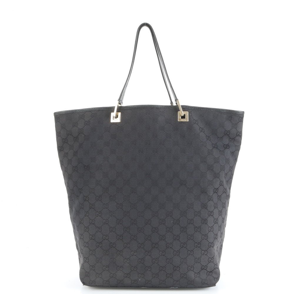 1円■極美品■グッチ■GG キャンバス レザー トート バッグ 肩掛け ショルダー ハンド 002-1097 ブラック 黒 A4 レディース EUE CY20-3