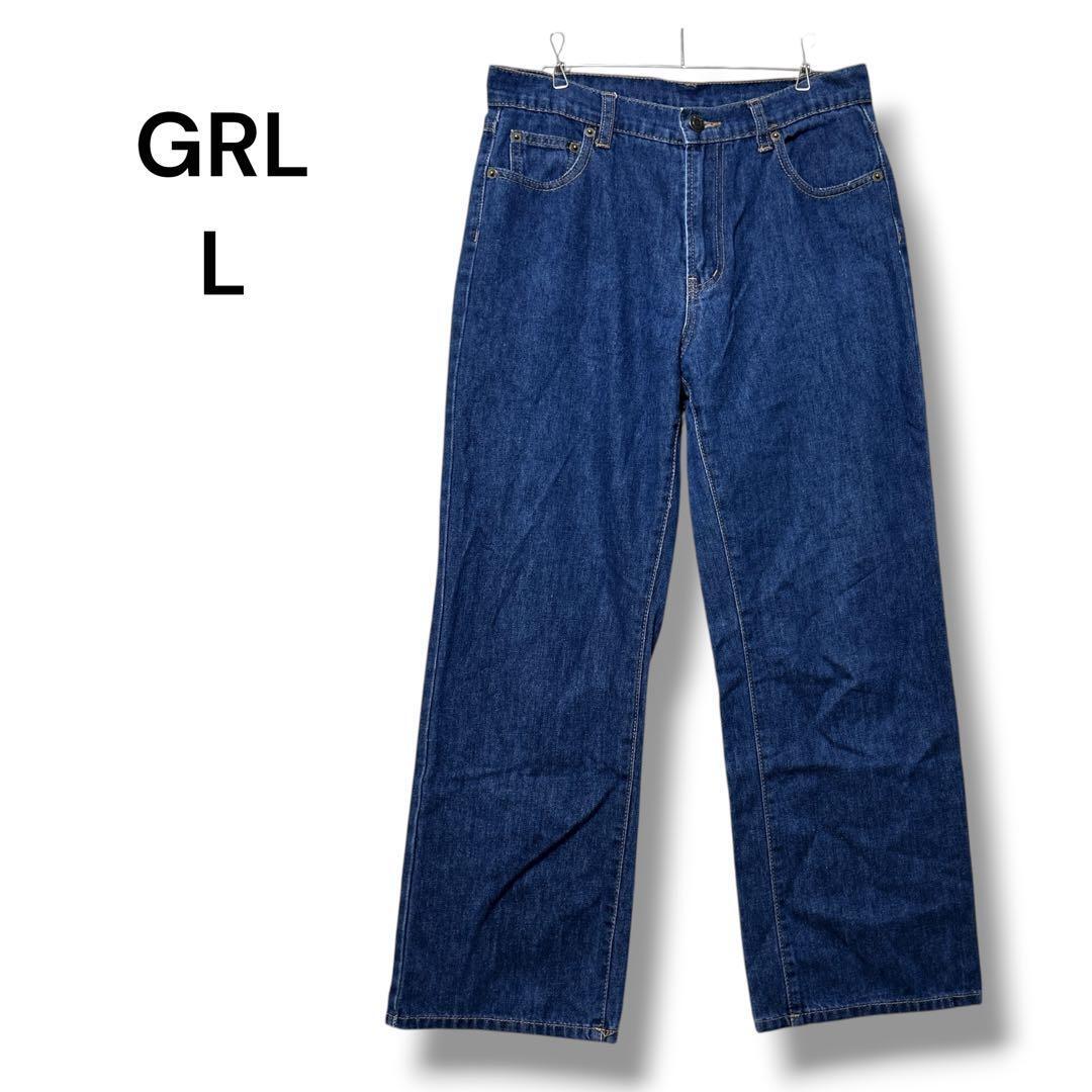 グレイル デニム ハイウエスト ストレート インディゴ  L ブルー 08FCC5