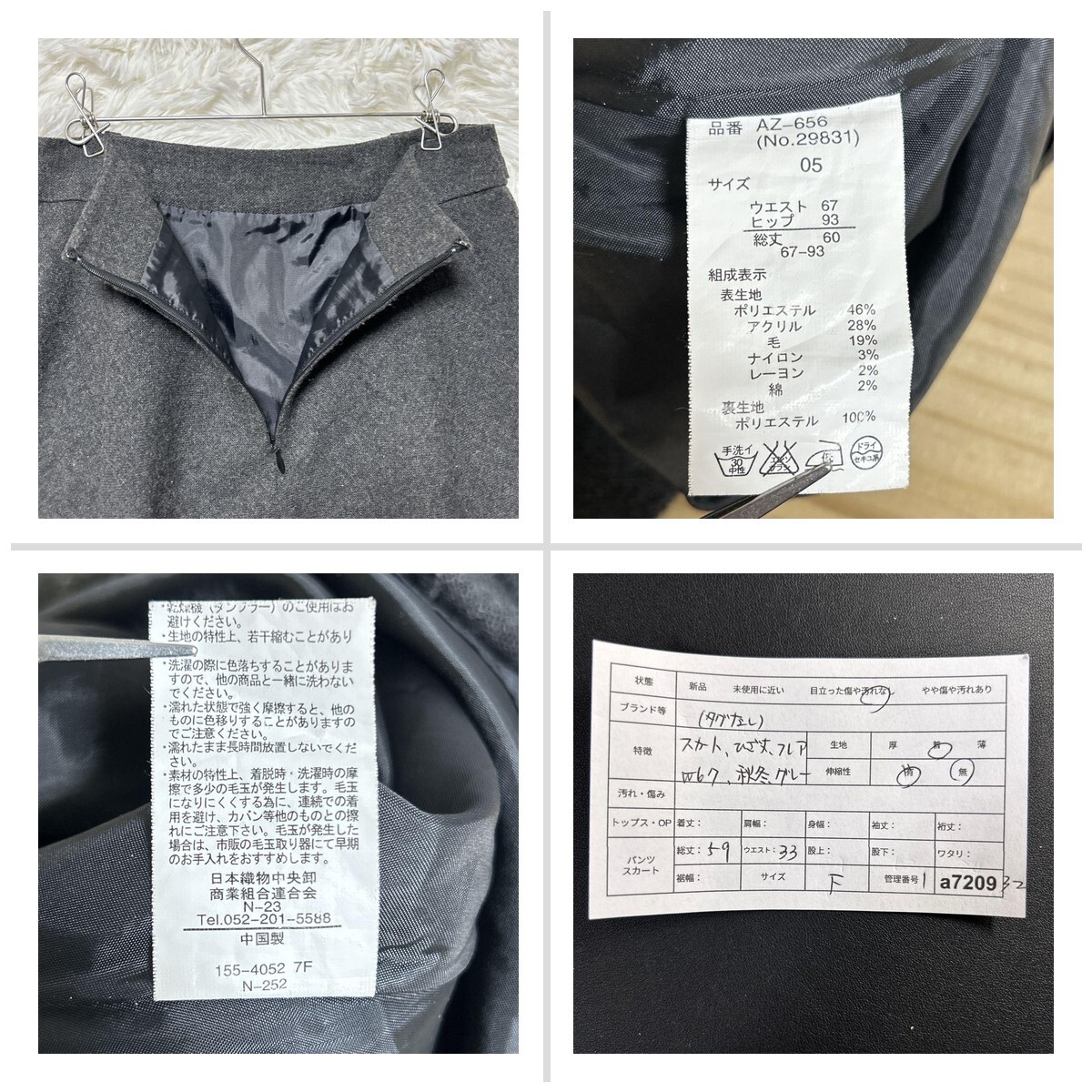 レディース スカート ひざ丈 フレア W67 グレー 秋冬 F 419693
