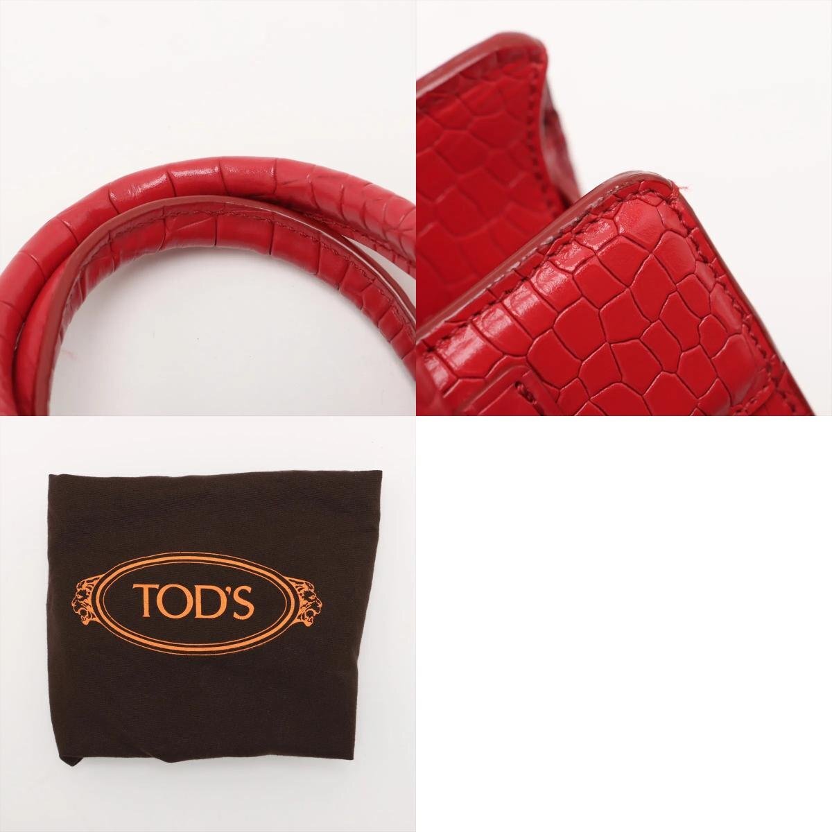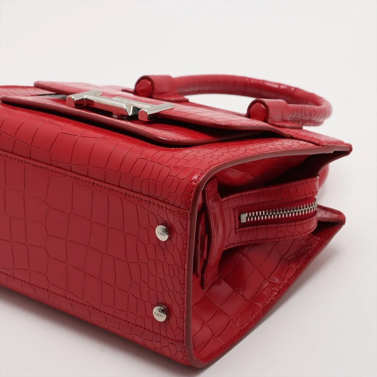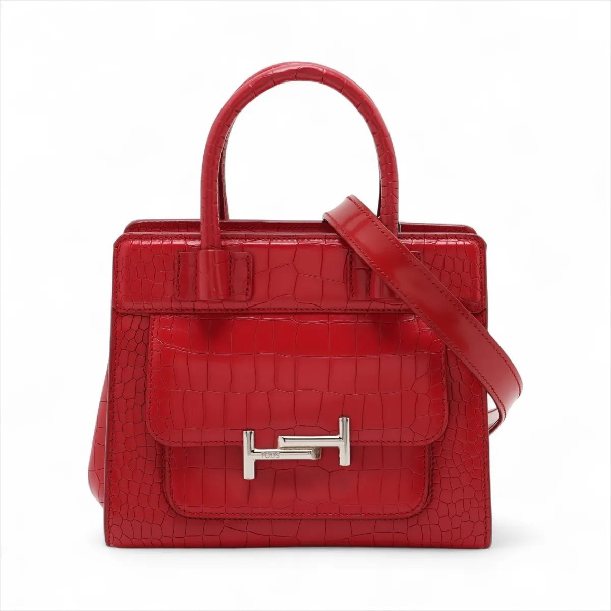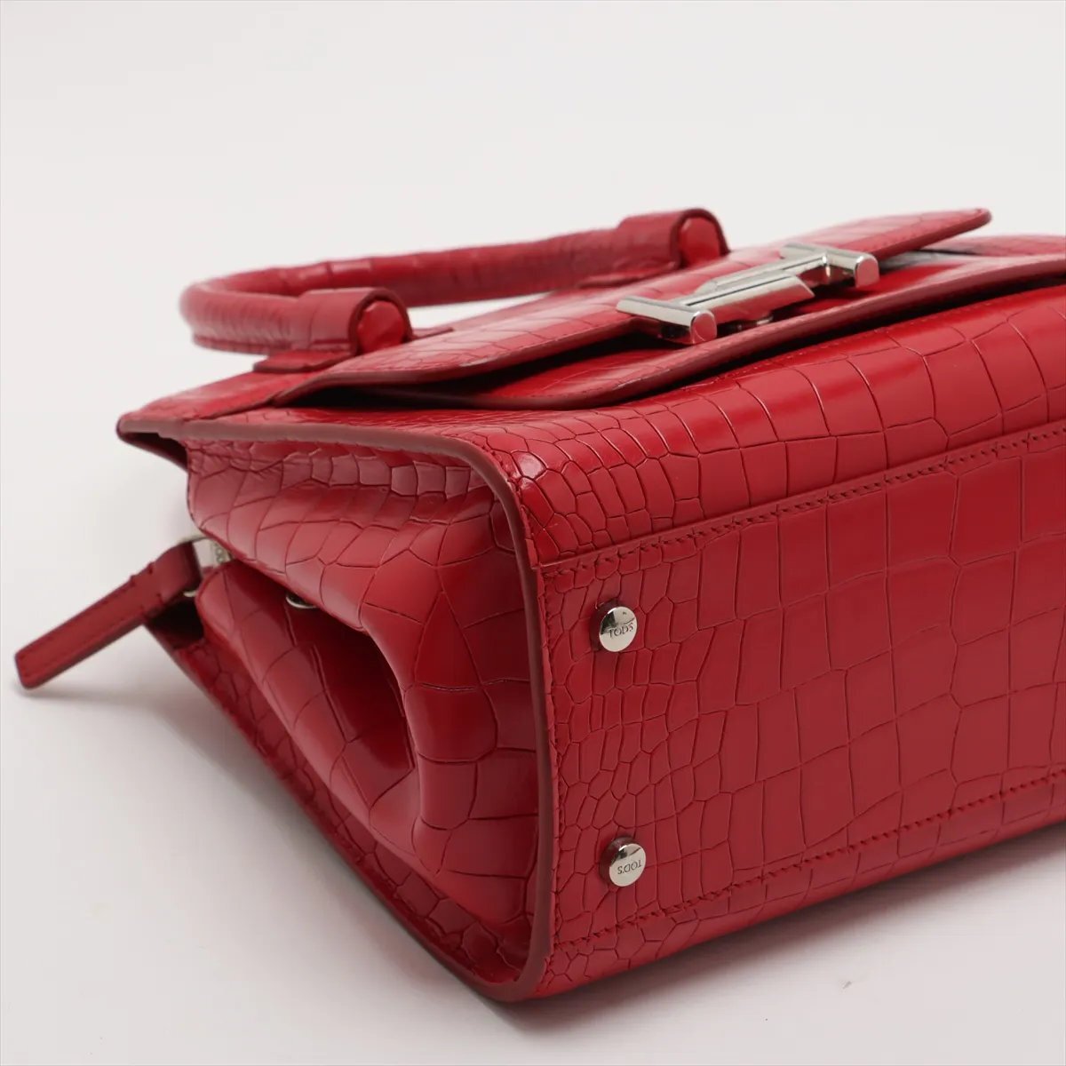 1円■新品同様■トッズ ダブルT クロコダイル エンボス レザー 2WAY ハンドバッグ 斜め掛け ショルダー トート 本革 レディース EME CW62-4