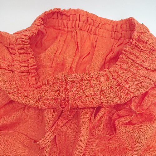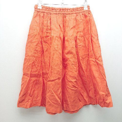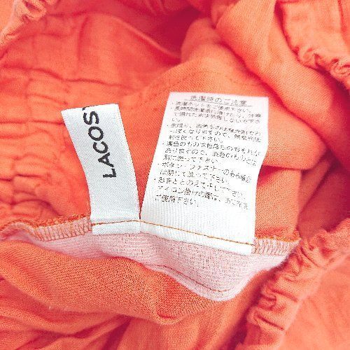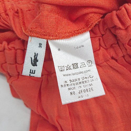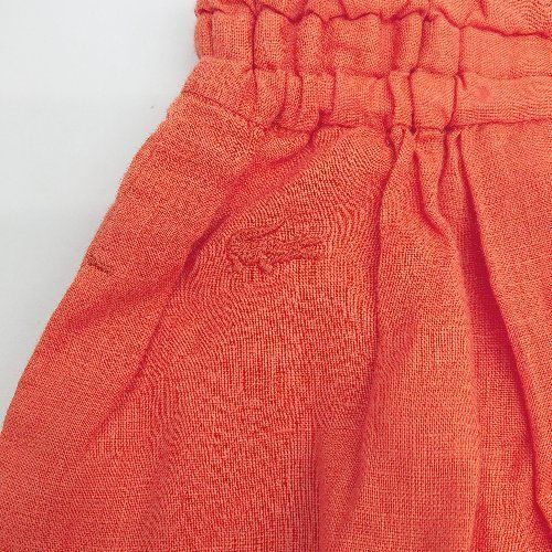 ◇ LACOSTE ラコステ ビタミンカラー 刺繍 ウエストゴム 刺繍 膝丈 フレア スカート サイズ36 オレンジ レディース E