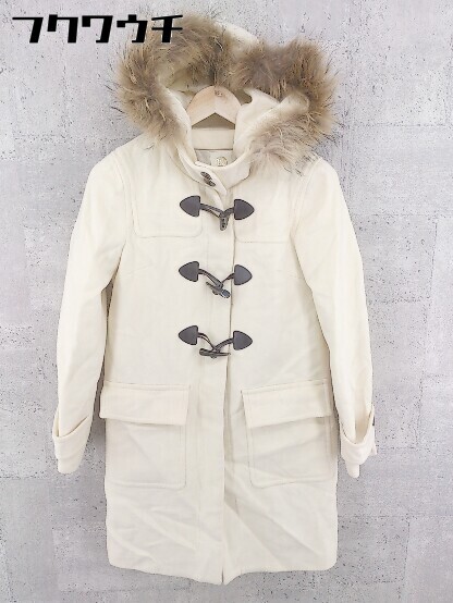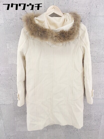 ■ ◎ LE SOUK ルスーク ラクーンファー 長袖 ダッフルコート サイズ36 アイボリー レディース