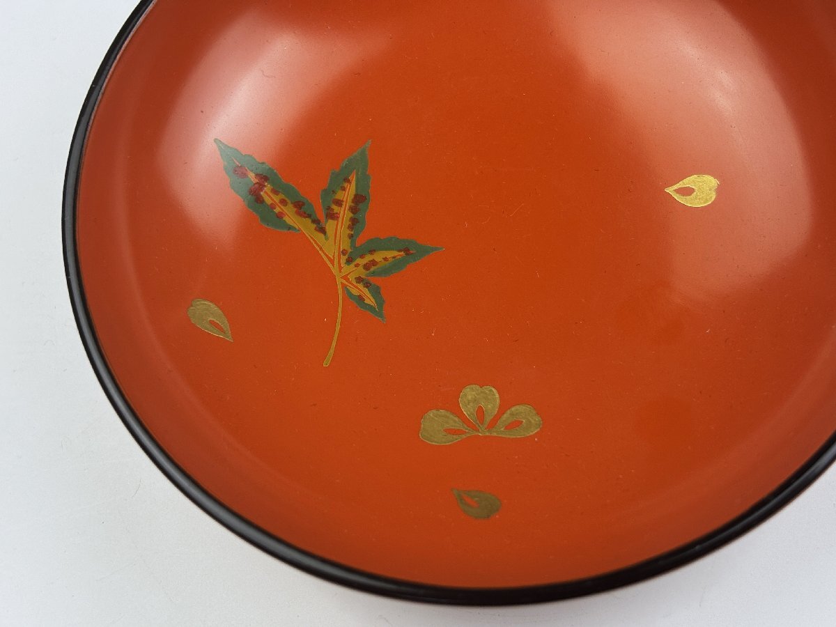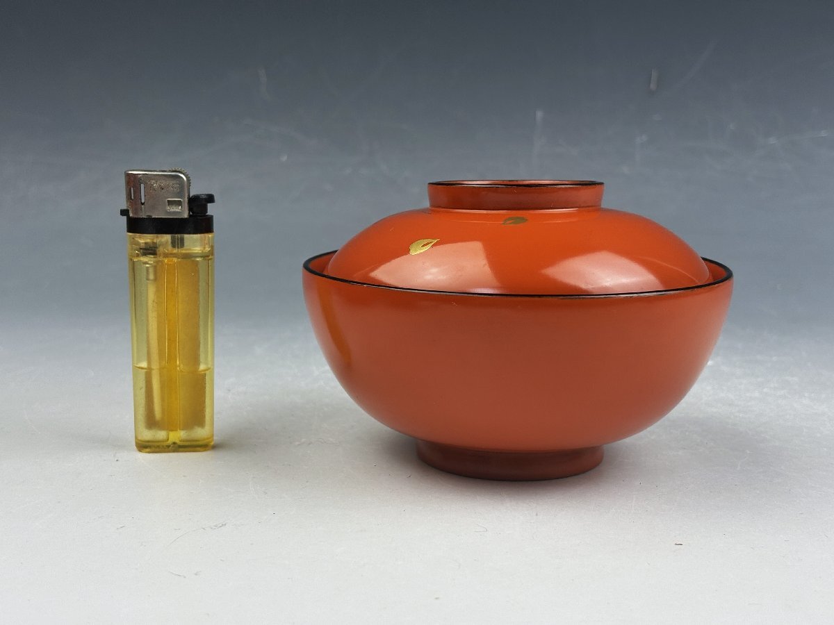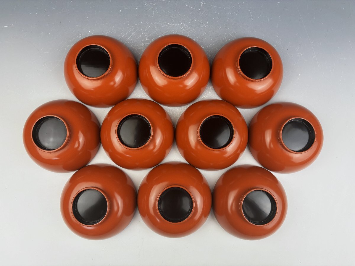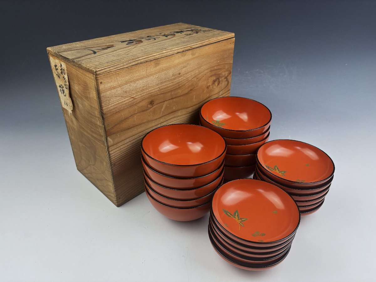 時代物 輪島塗 朱塗 色粉金蒔絵 雲錦蒔絵 紅葉桜図 吸物椀 汁物椀 蓋椀 10客揃 共箱 茶器 茶道具 和食器 木製漆器 古美術骨董品 SGS124