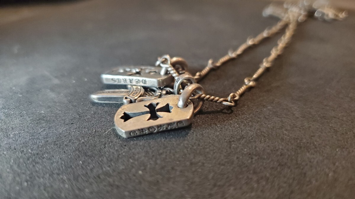 当方がそれぞれ購入した際は「クロムハーツ」「ジルコニア」との表記がありなかなかな金額でしたが、当時からインボイスなど封入物はなくお問い合わせ頂いても真贋の証明が出来ませんので、この価格設定にさせて頂きました。