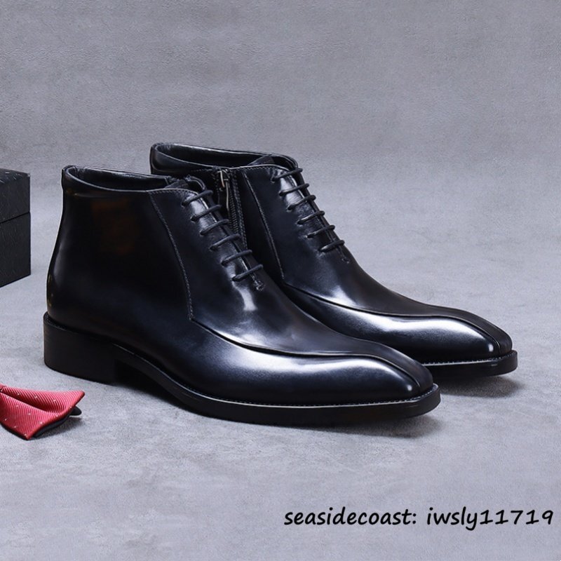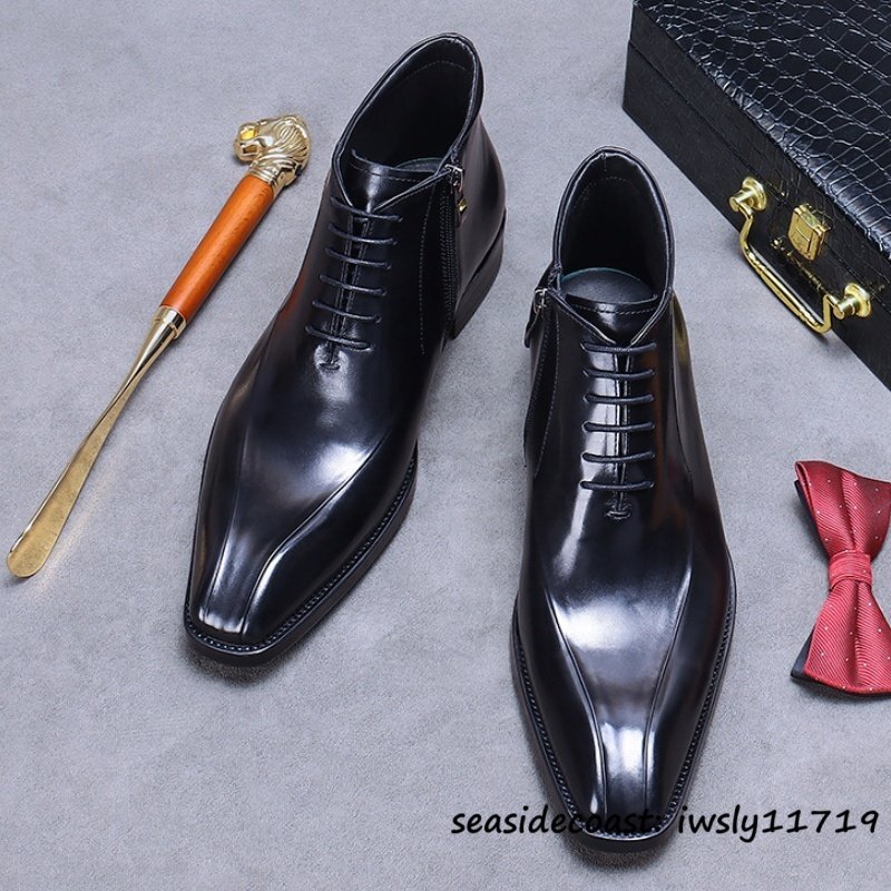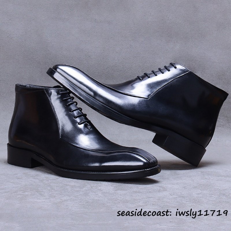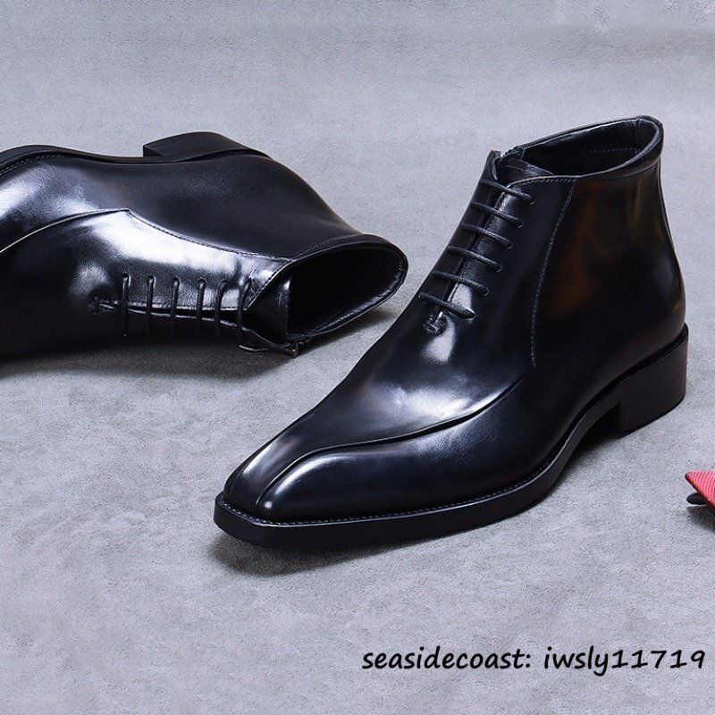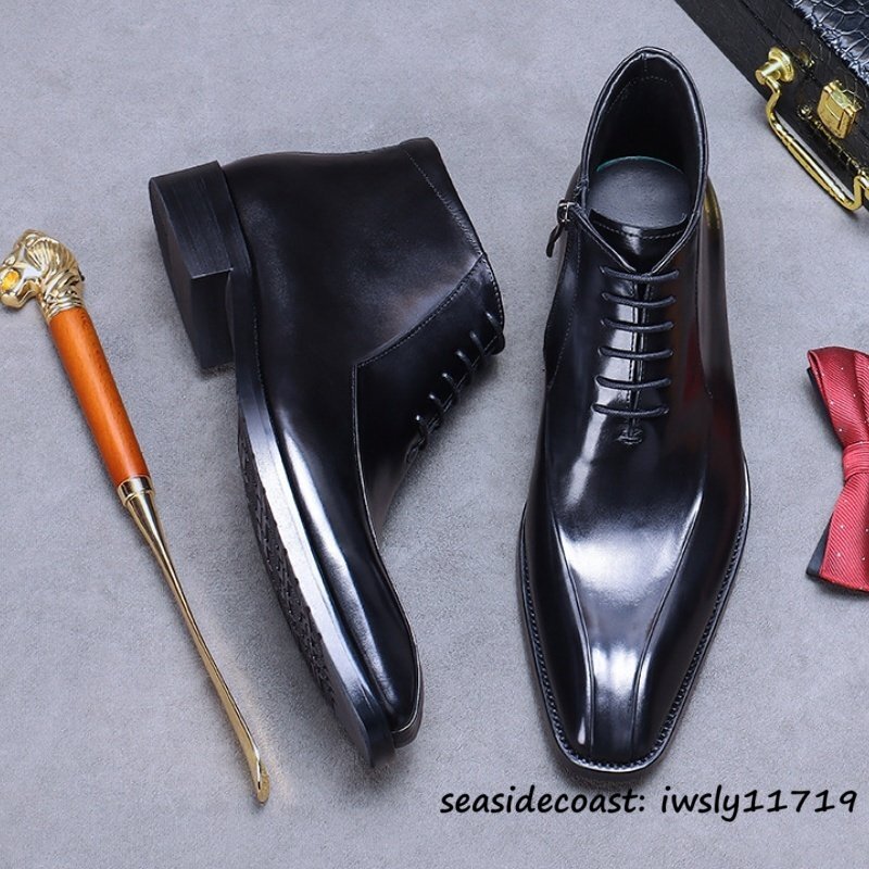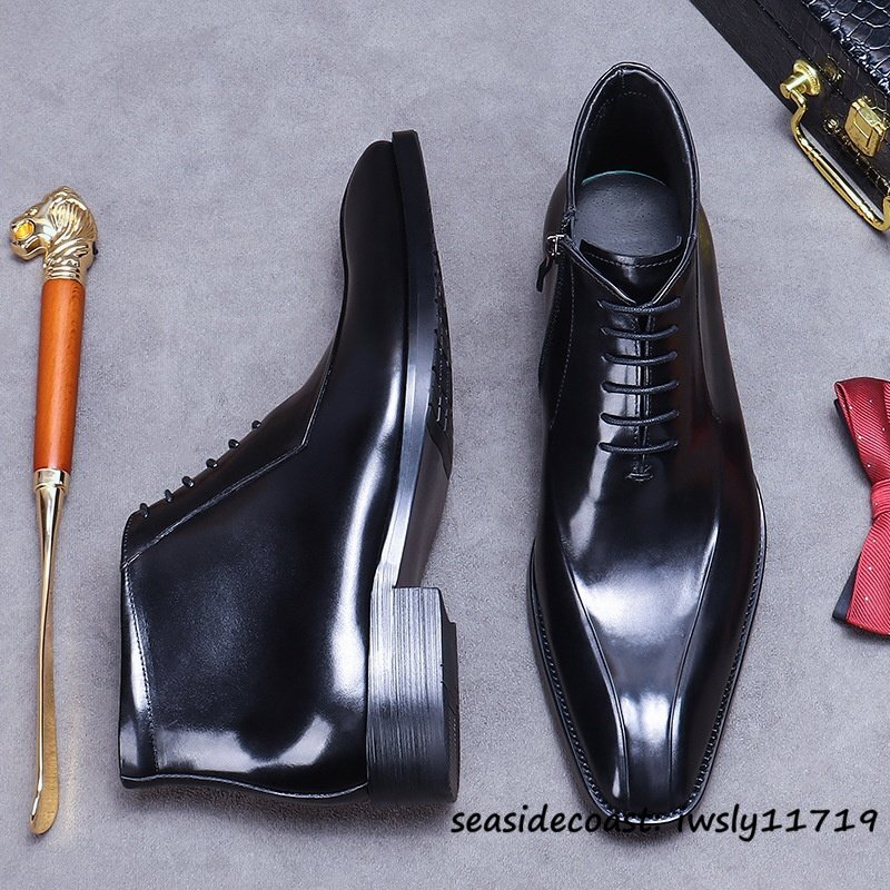 最上級*定価16万 マーティンブーツ 本革 ビジネスブーツ ショートブーツ 職人手作り 牛革 皮靴 レザーブーツ 紳士靴 革靴 ブラック 25.5cm