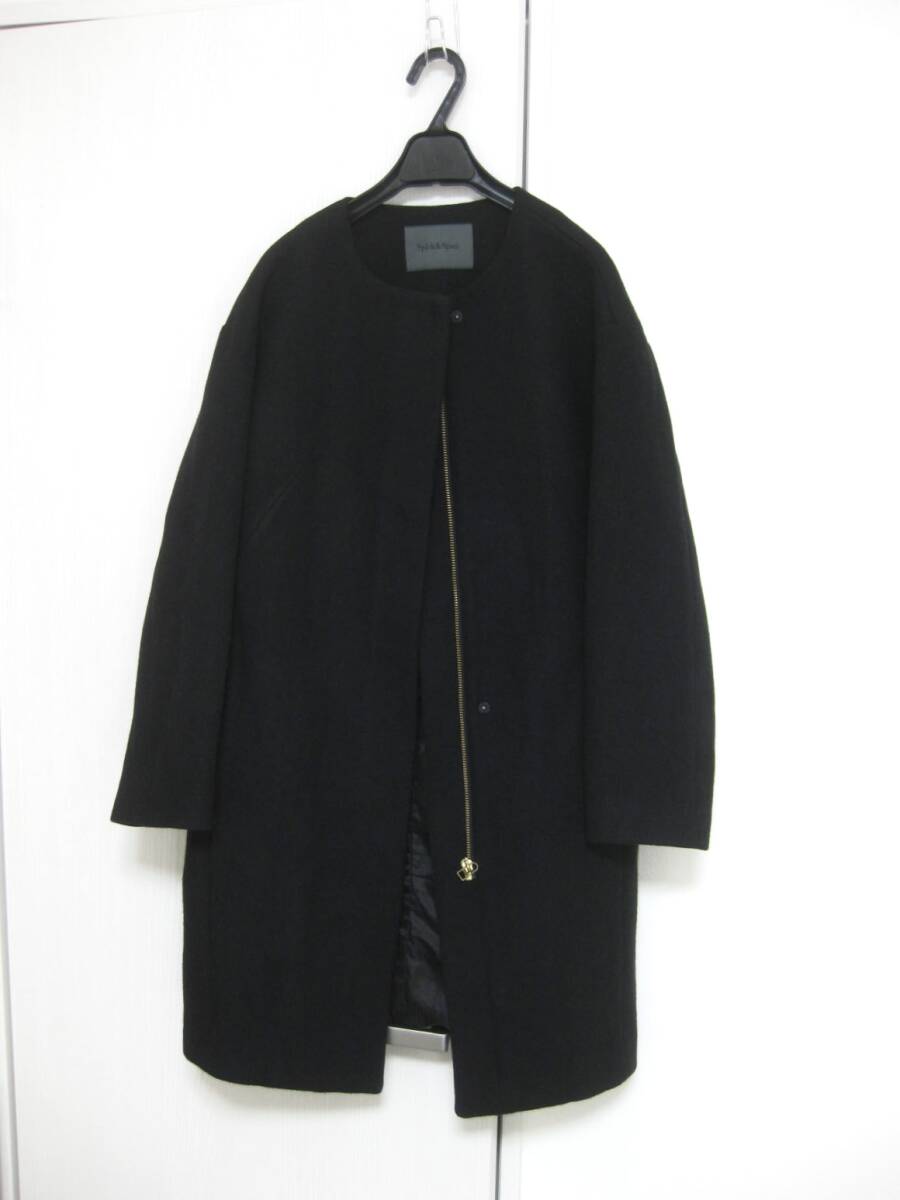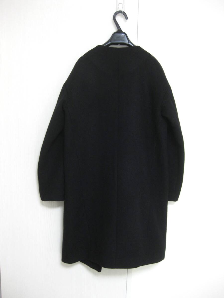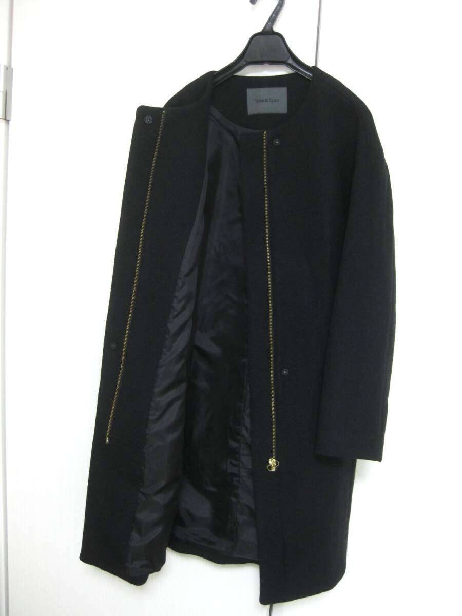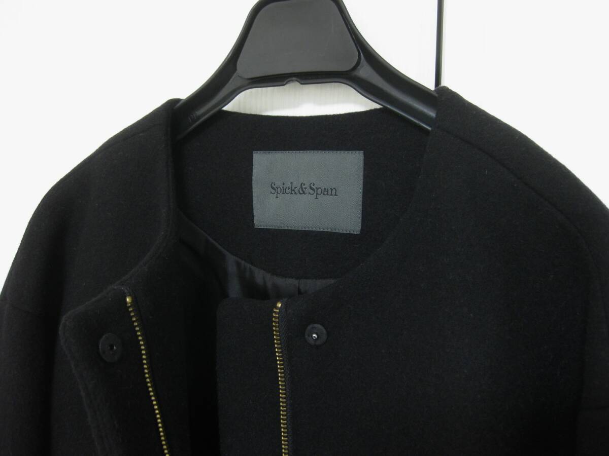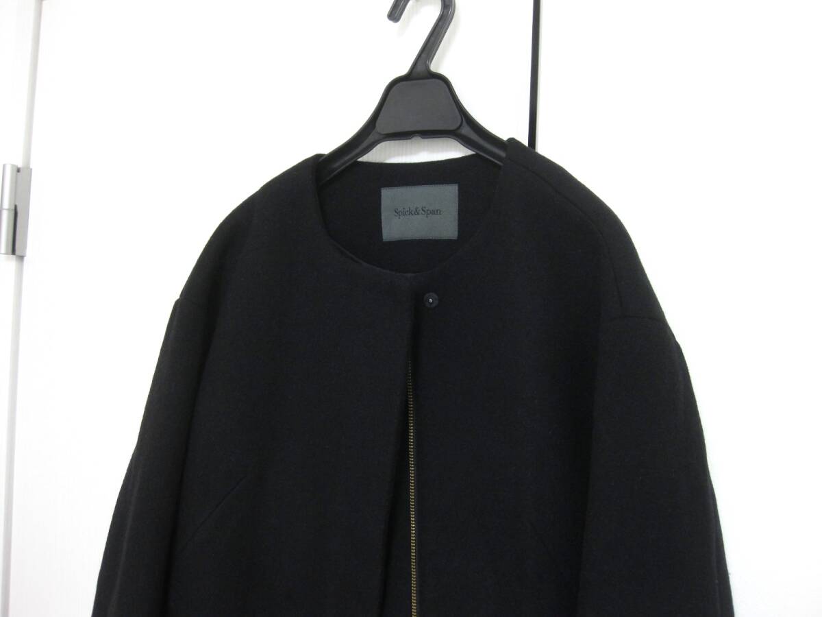 Spick&Span ロングコート 黒 36 ウール混 ノーカラー スピック&スパン