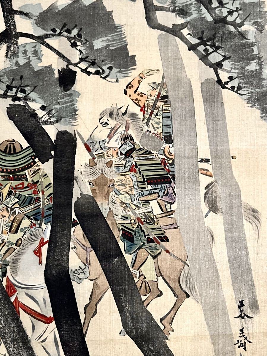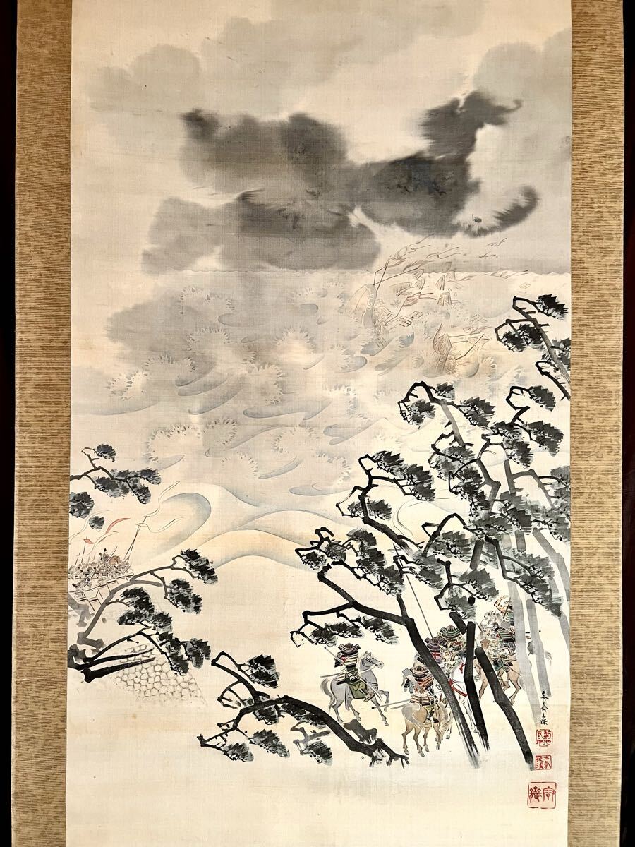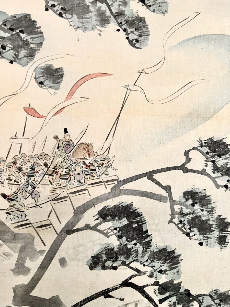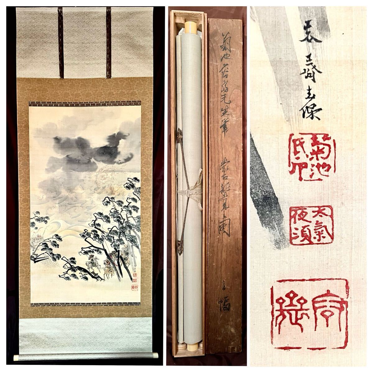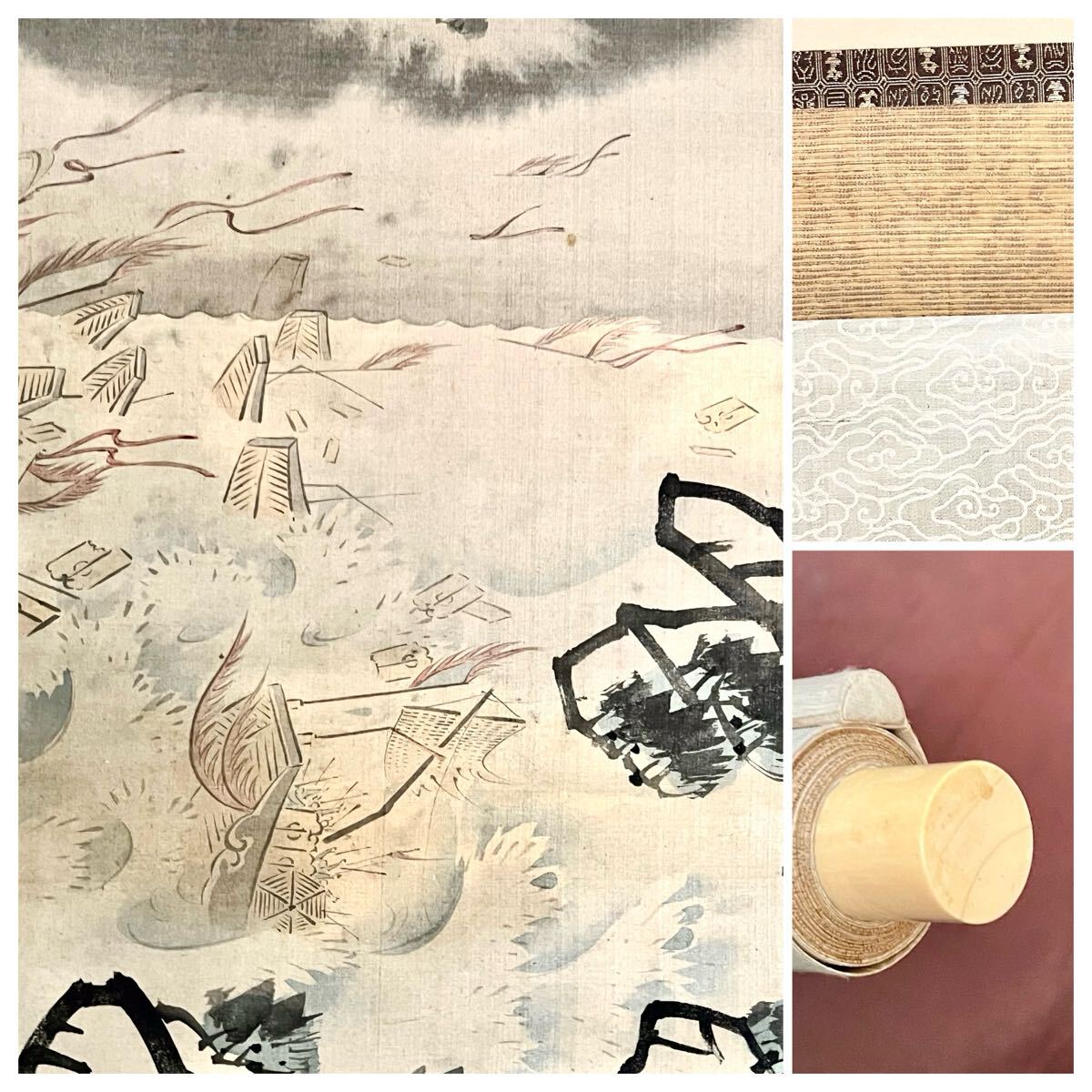 【真作】【仙】菊池容斎「蒙古襲来図」絹本 肉筆 合箱 超大幅 武者絵 歴史画 元寇 モンゴル 神風 鳥獣 馬図 絵画 掛軸 幕末-明治時代の日本画家