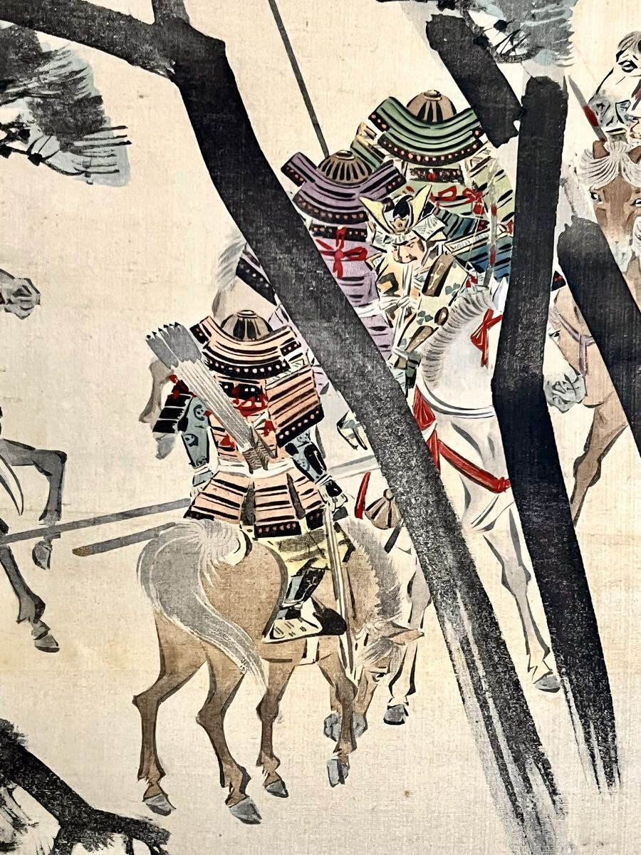 【真作】【仙】菊池容斎「蒙古襲来図」絹本 肉筆 合箱 超大幅 武者絵 歴史画 元寇 モンゴル 神風 鳥獣 馬図 絵画 掛軸 幕末-明治の日本画家