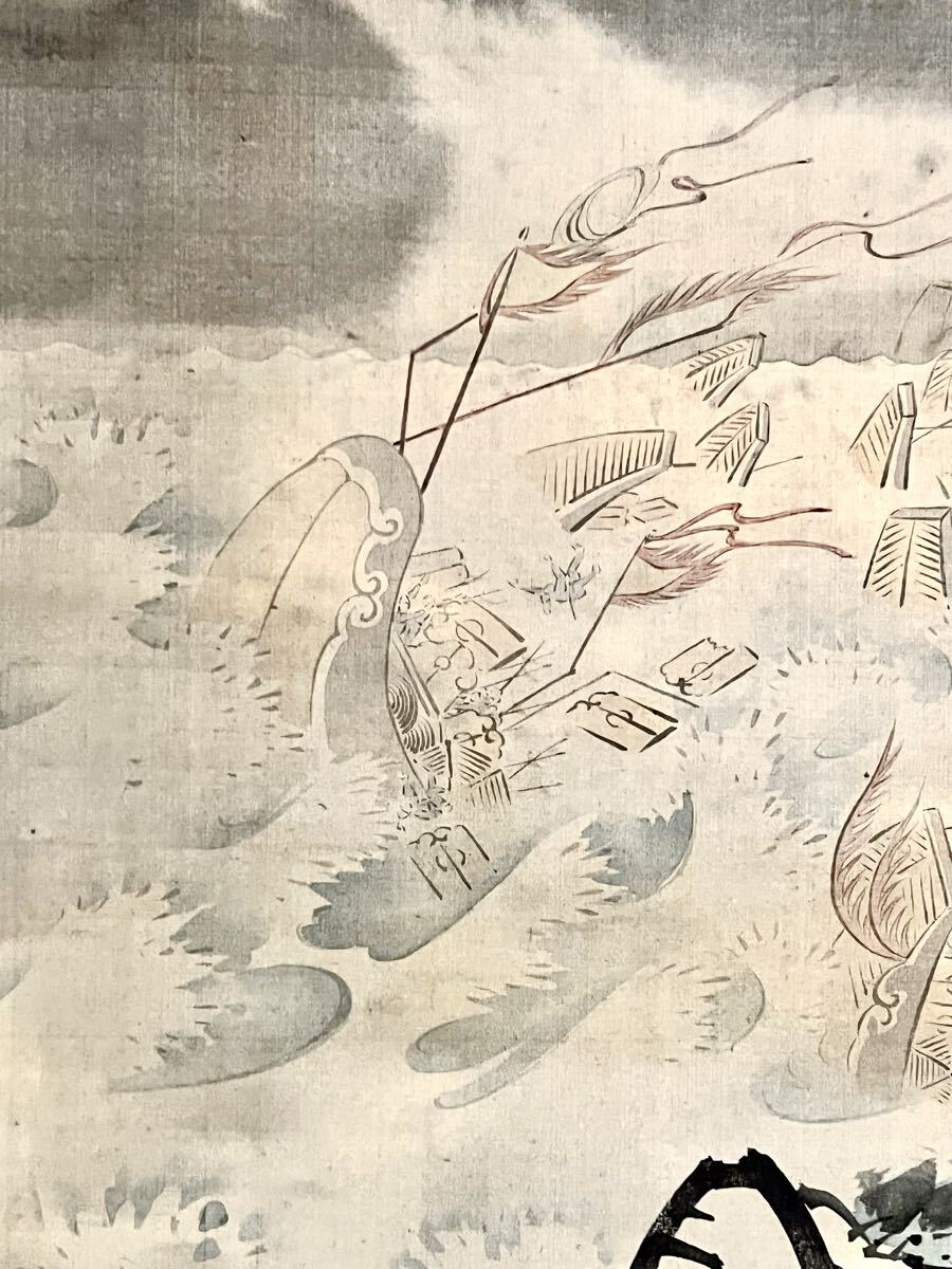 蒙古襲来の神風によって転覆する元軍の様子を描いた作品です。