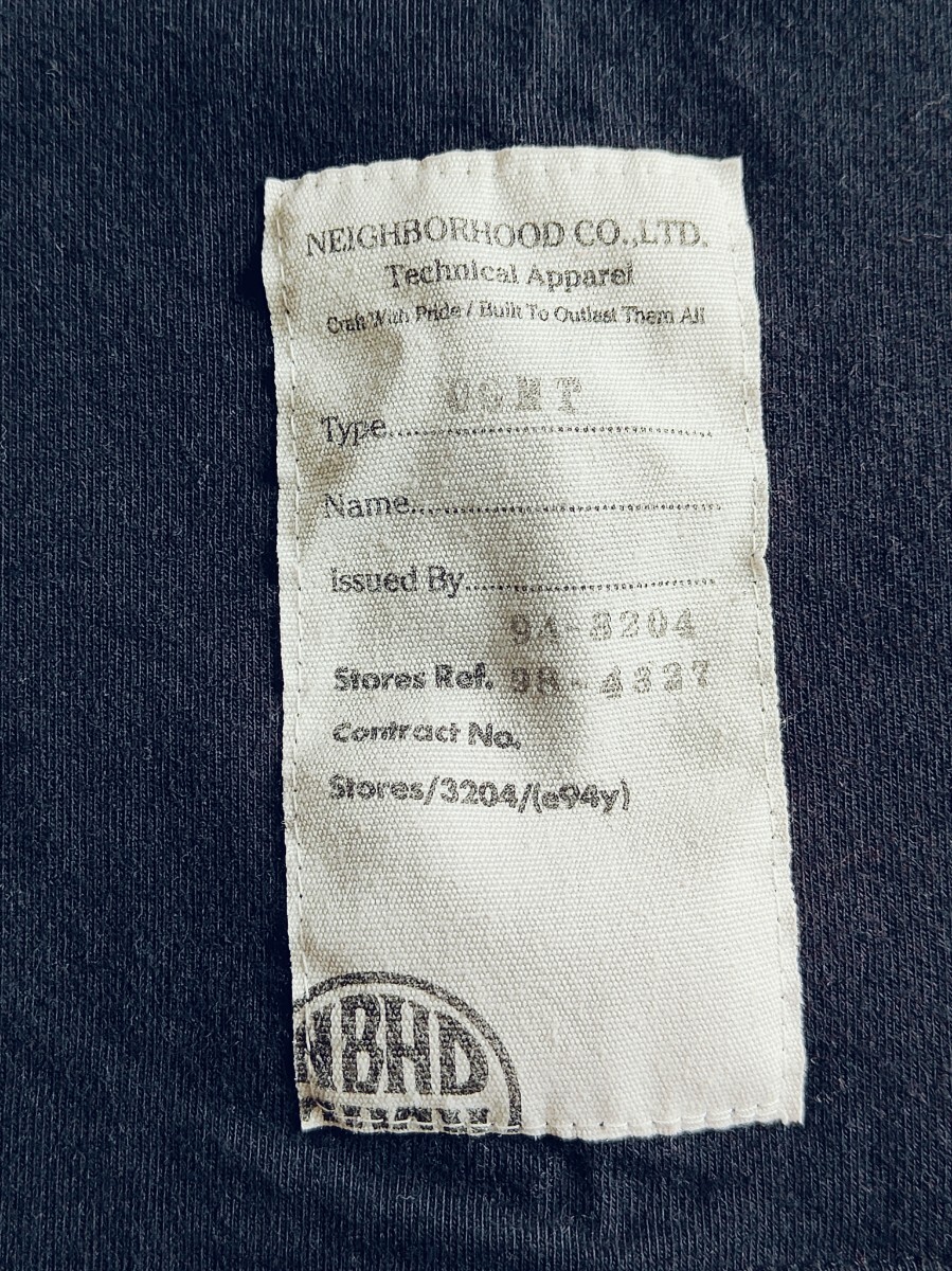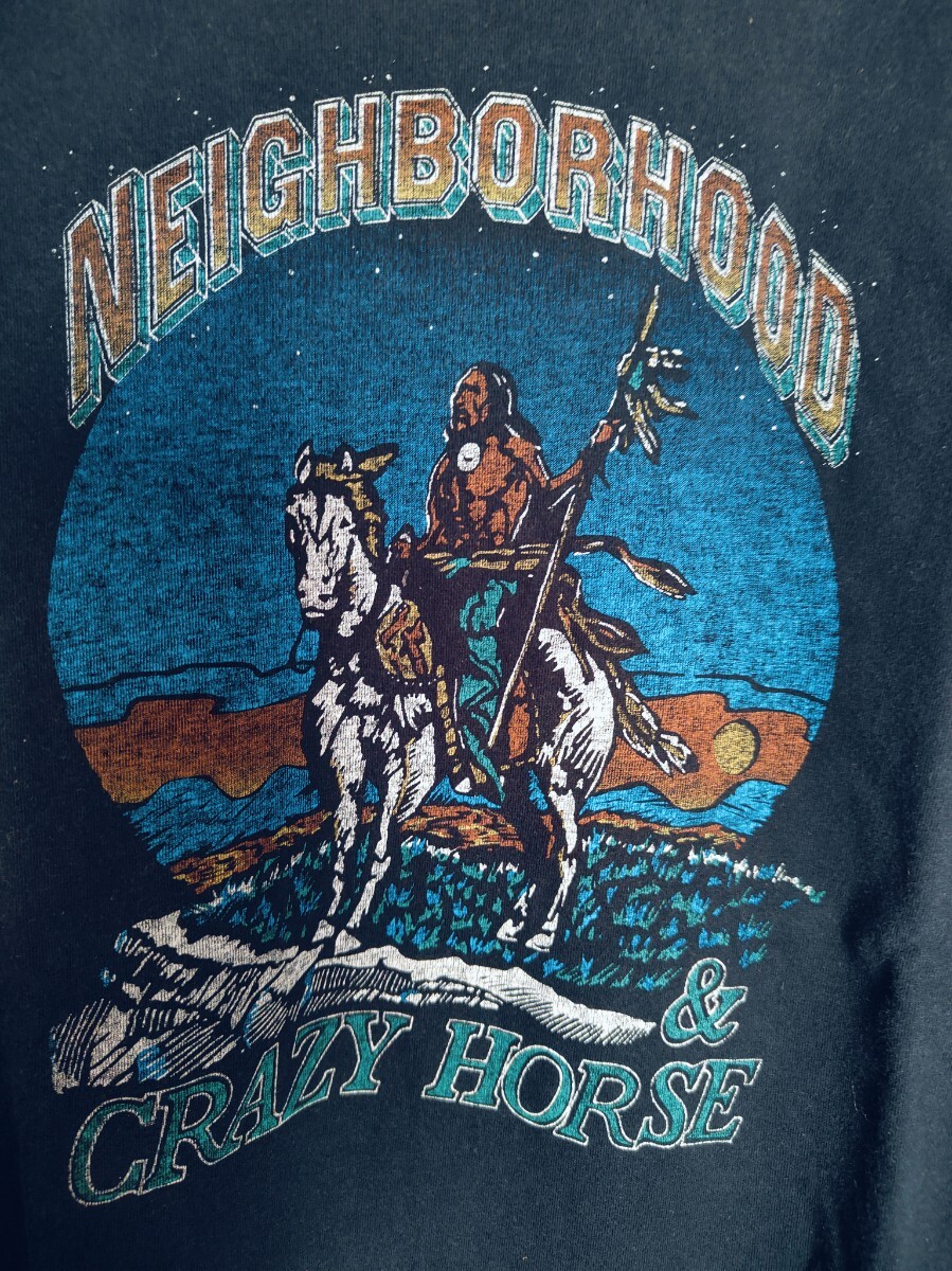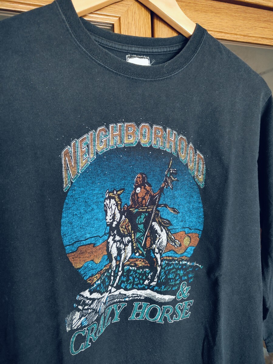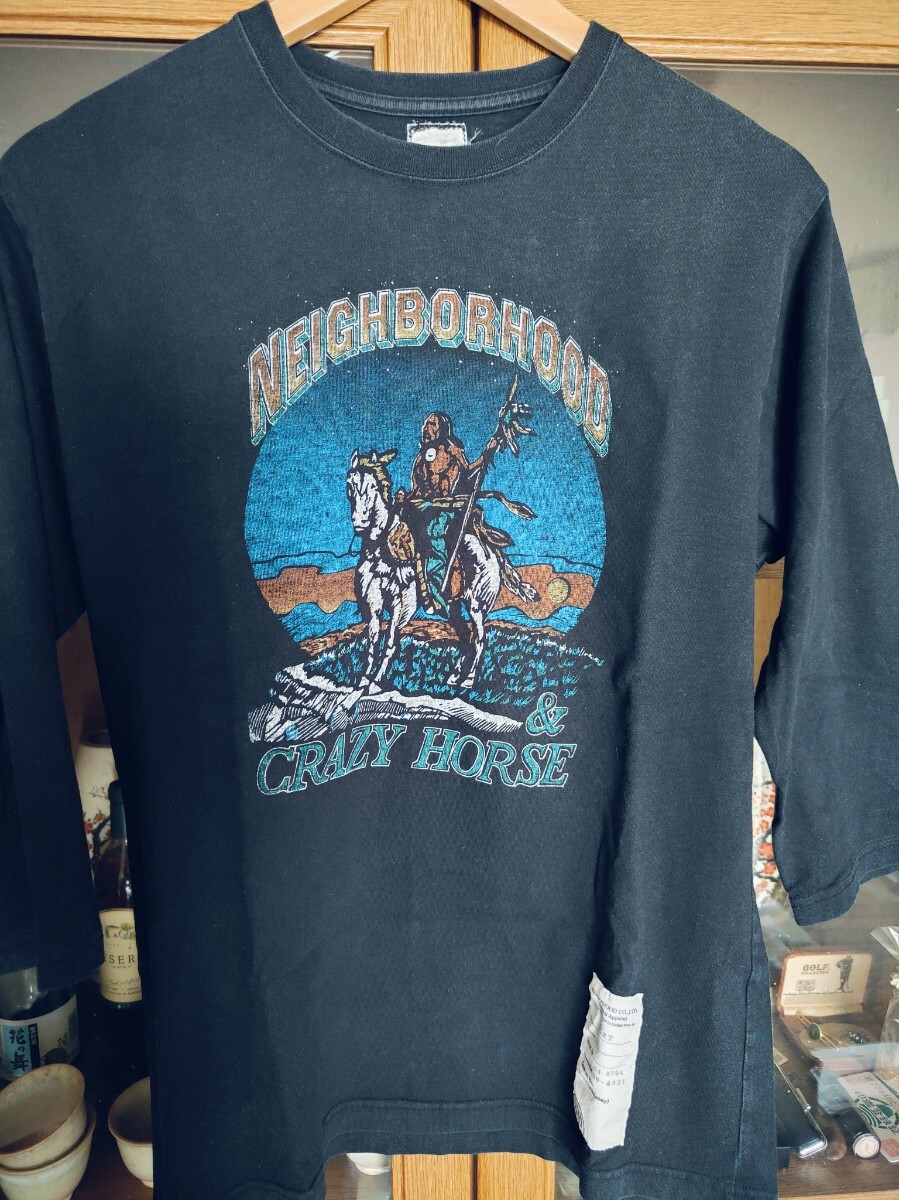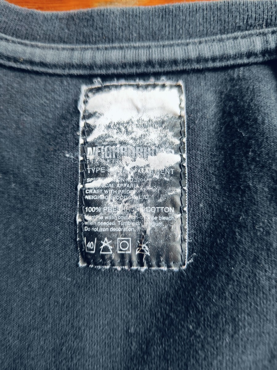 お品は、ネイバーフッドの七分袖Tシャツです。フロントのデザインがバンドTシャツのような出で立ちが気に入って購入致しました。最近は活用機会がなく、出品に至りました。ネイバーの中でも古いアイテムです。下北沢のバンドT専門の古着屋さんにあるイメージです。イイカンジのフェード感もあり、古着慣れされている方々は活用頂けると思います。サイズ表記は不明です。自宅保管という事にご理解頂ける方は宜しくお願い致します。