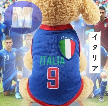 ドッグウェア 春夏 イタリア Mサイズ サッカー 代表 ユニフォーム 犬服 小型犬 袖なし 通気性 柔らか 洋服 可愛い