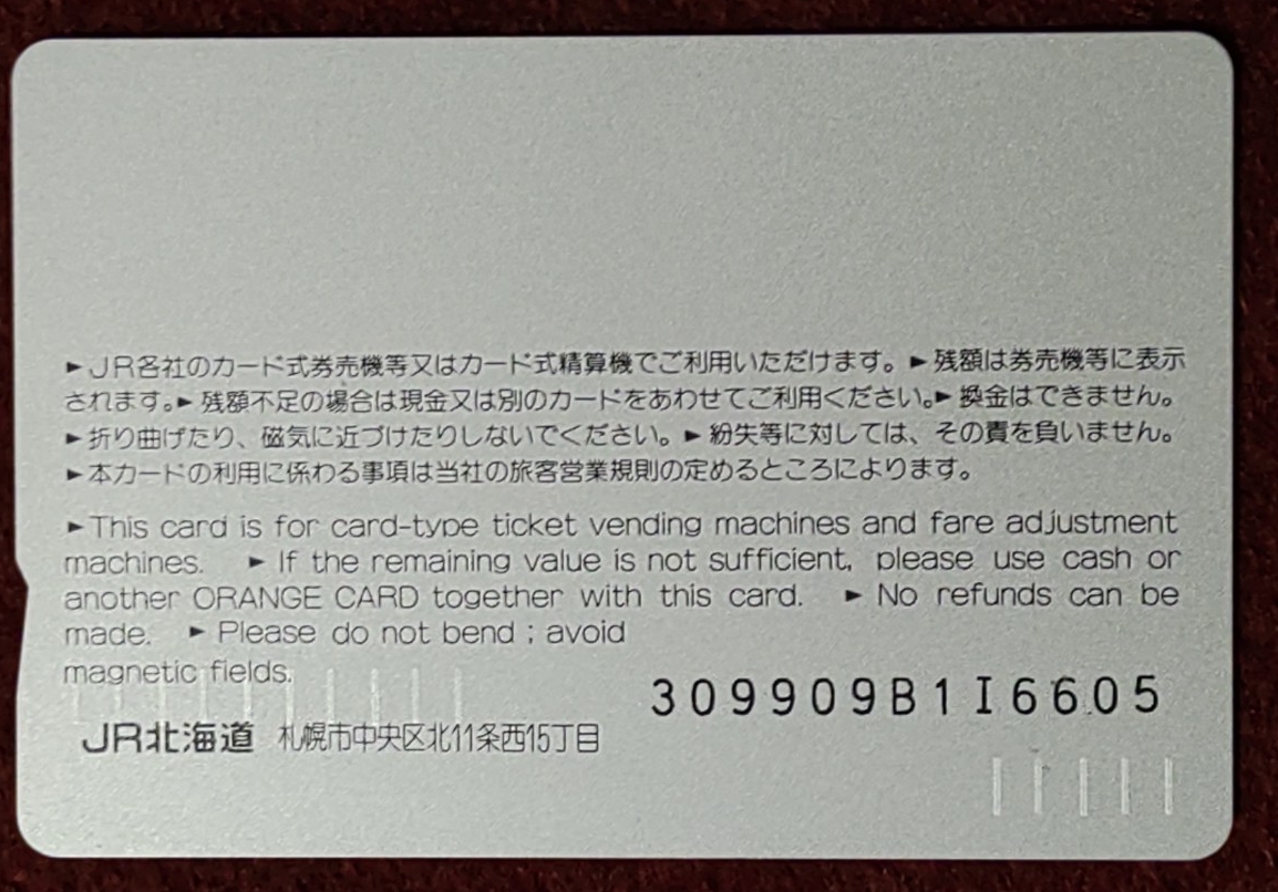 ごく稀に磁気不良の場合があります。その場合は申し訳ありませんがJR各社・主な駅のみどりの窓口まで持ち込んでいただき、返金処理をお受け願います(国鉄・JR他社のカードも返金してくれます。少々日数がかかります)。