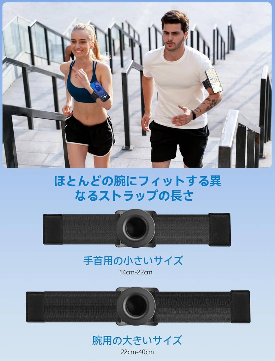 【2サイズ調節可能ストラップ】TOPGOランニング携帯ホルダーには、2本のストラップが付属しています。短ストラップ(最大23cm)は手首に、ロングストラップ(最大43cm/17インチ)は上腕に最適。メッシュ素材採用で通気性抜群、吸汗速乾機能付き。ランニング・ジムトレーニングなど激しい運動でも蒸れません。