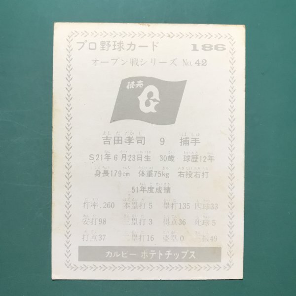 1977年 カルビー プロ野球カード 77年 186番 巨人 吉田  黒版   -WWJ35