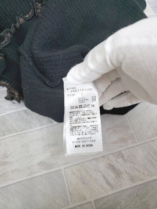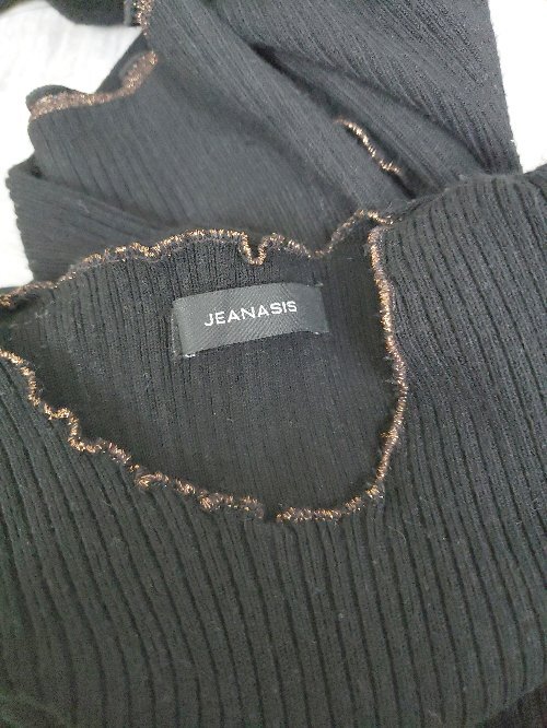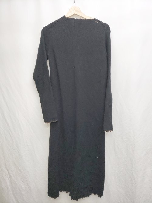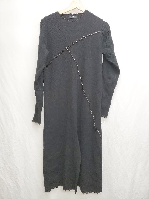 ◇ Θ JEANASIS ジーナシス 12G シャイニー メロー リブ 長袖 膝下 ニット ワンピース サイズF ブラック レディース P