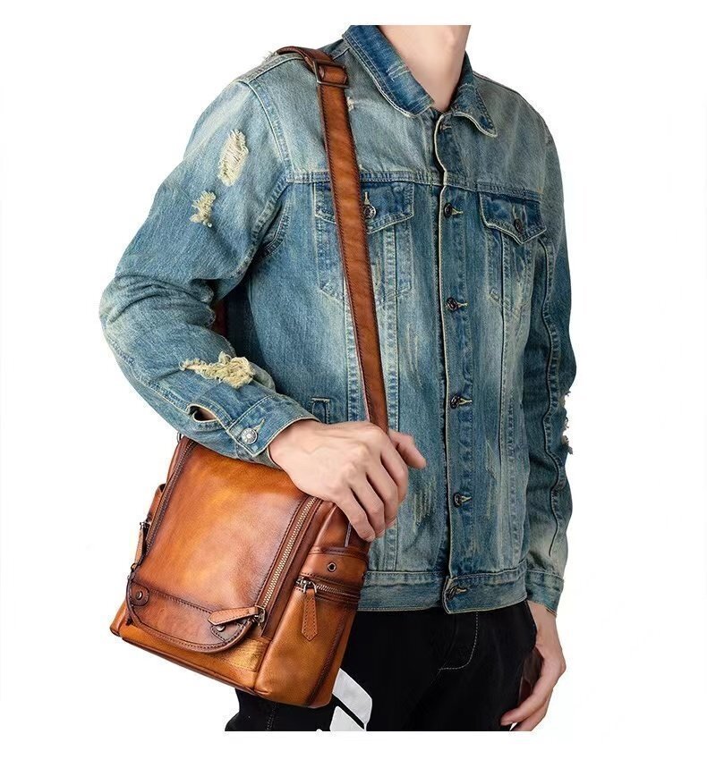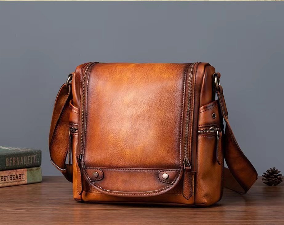 推薦★本革 ショルダーバッグ メンズ アンティーク 斜め掛け鞄 メッセンジャーバッグ 多機能 ヌメ革 本革 レザー 縦型 iPad収納
