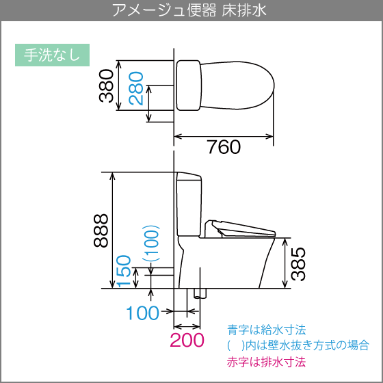 ★ 排水芯は便器後方、壁面より200mmタイプですのでご注意下さい。
