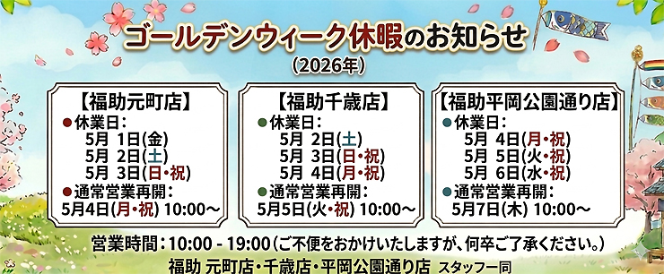 リサイクルショップ 福助 千歳店 北海道千歳市青葉6丁目13-4 営業時間:10:00~19:00(年末年始/毎週日曜日、第三水曜日定休) Tel:0123-25-3113 Mail:fukusuke-0123@sepia.plala.or.jp |