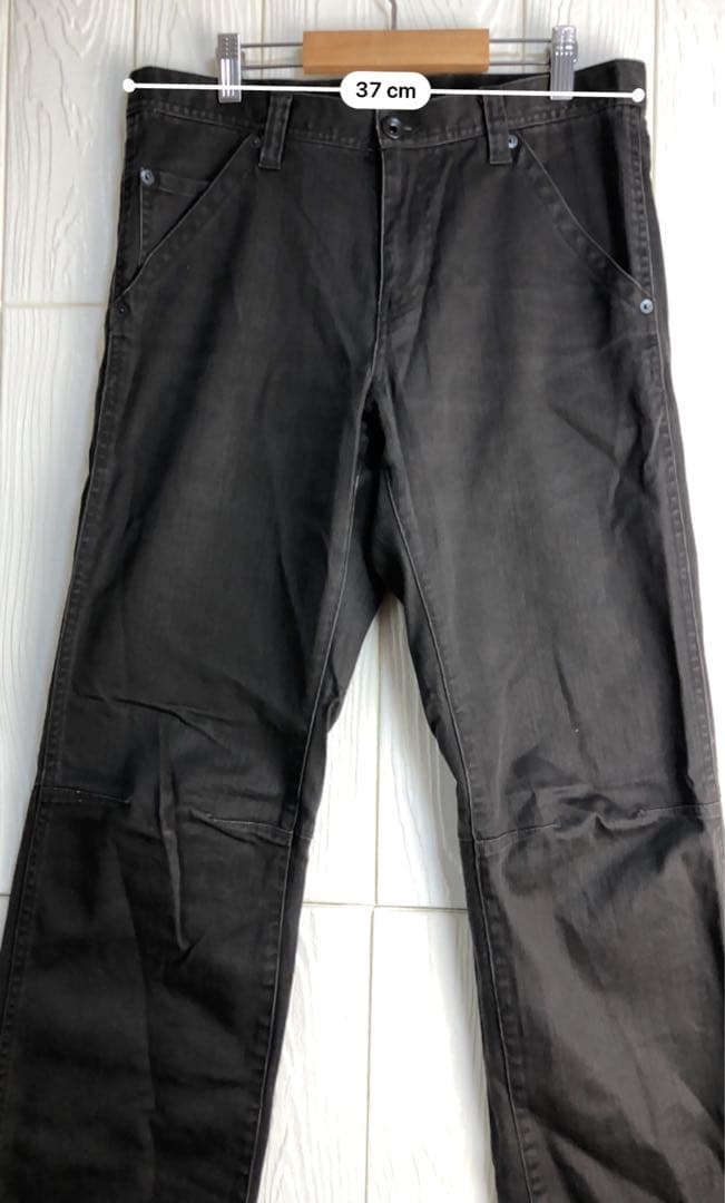 シンプルなデザインのブラックデニムパンツ、快適な着用感とスタイリッシュなシルエット。