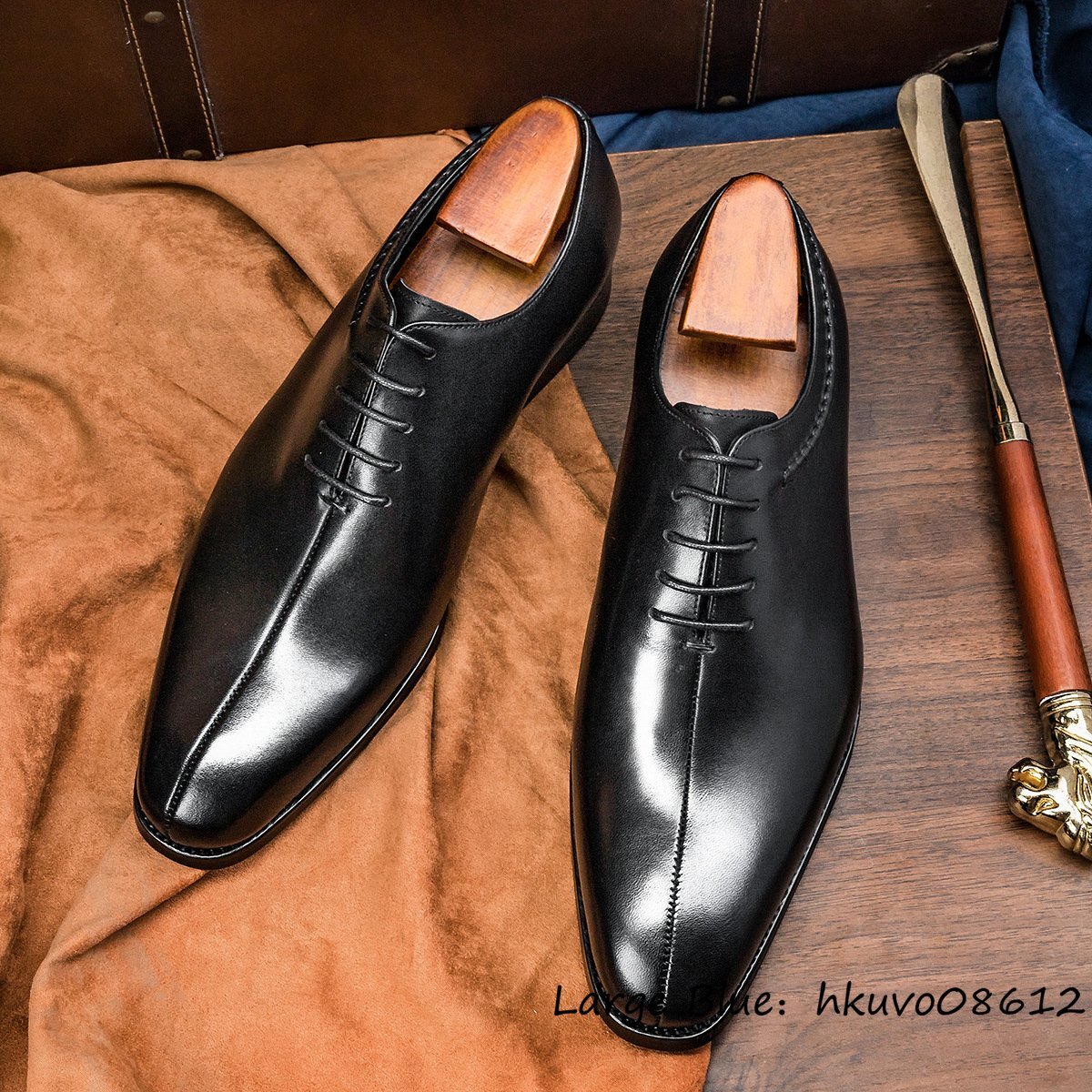 定価10万超■新品 メンズ ビジネスシューズ 本革 革靴 レザーシューズ フォーマル 超希少 職人手塗仕上げ 紳士靴 結婚式 ブラック 24.5cm