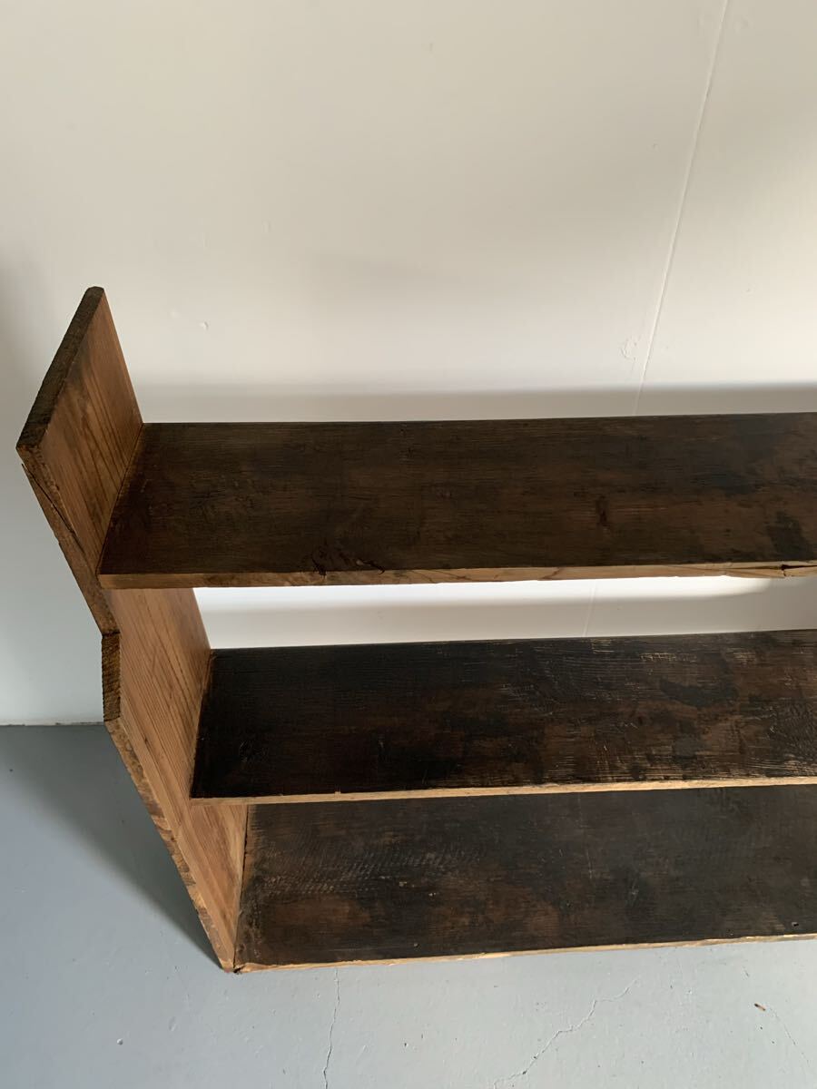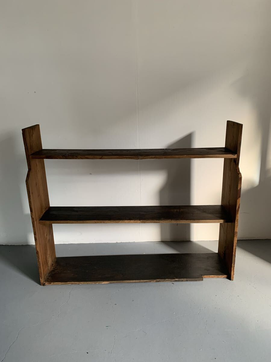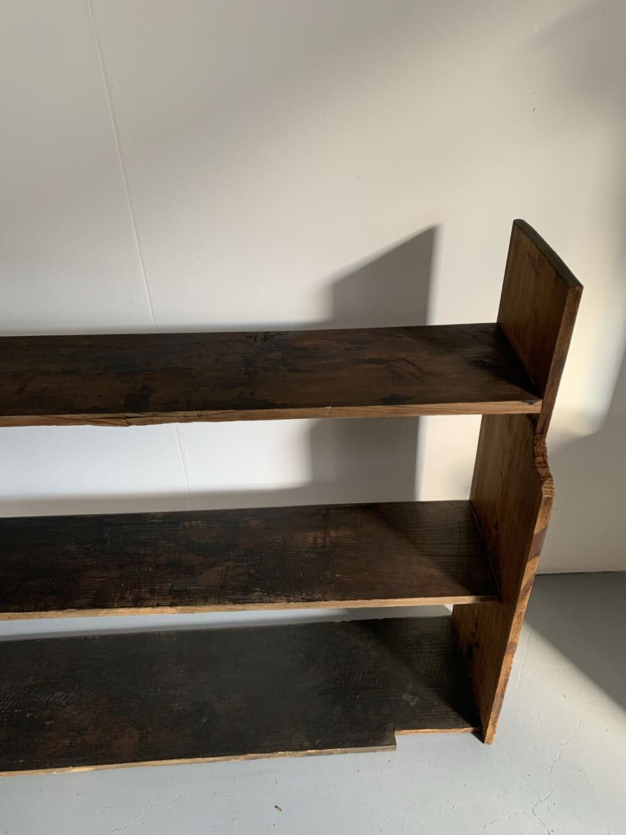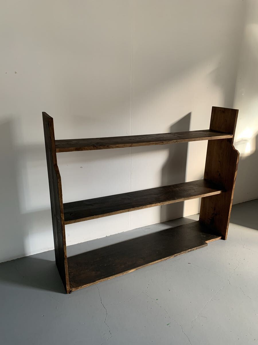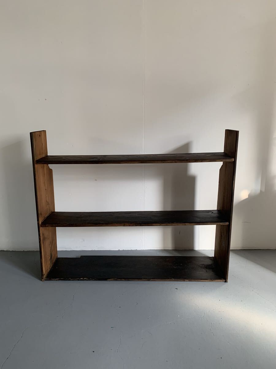 経年の雰囲気が素敵な木製三段棚です。全て無垢材が使われています。展示台や収納棚として、お部屋のインテリアやお店のディスプレイ、イベント出店時の什器などに使って頂くと素敵だと思います。