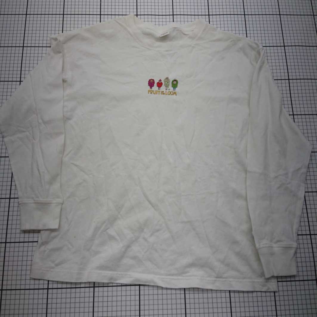 ◇ ⊇ Fruit of the Loom フルーツオブザルーム ロゴ入り 長袖 ロゴ入りロングTシャツ サイズM ホワイト系 メンズ E