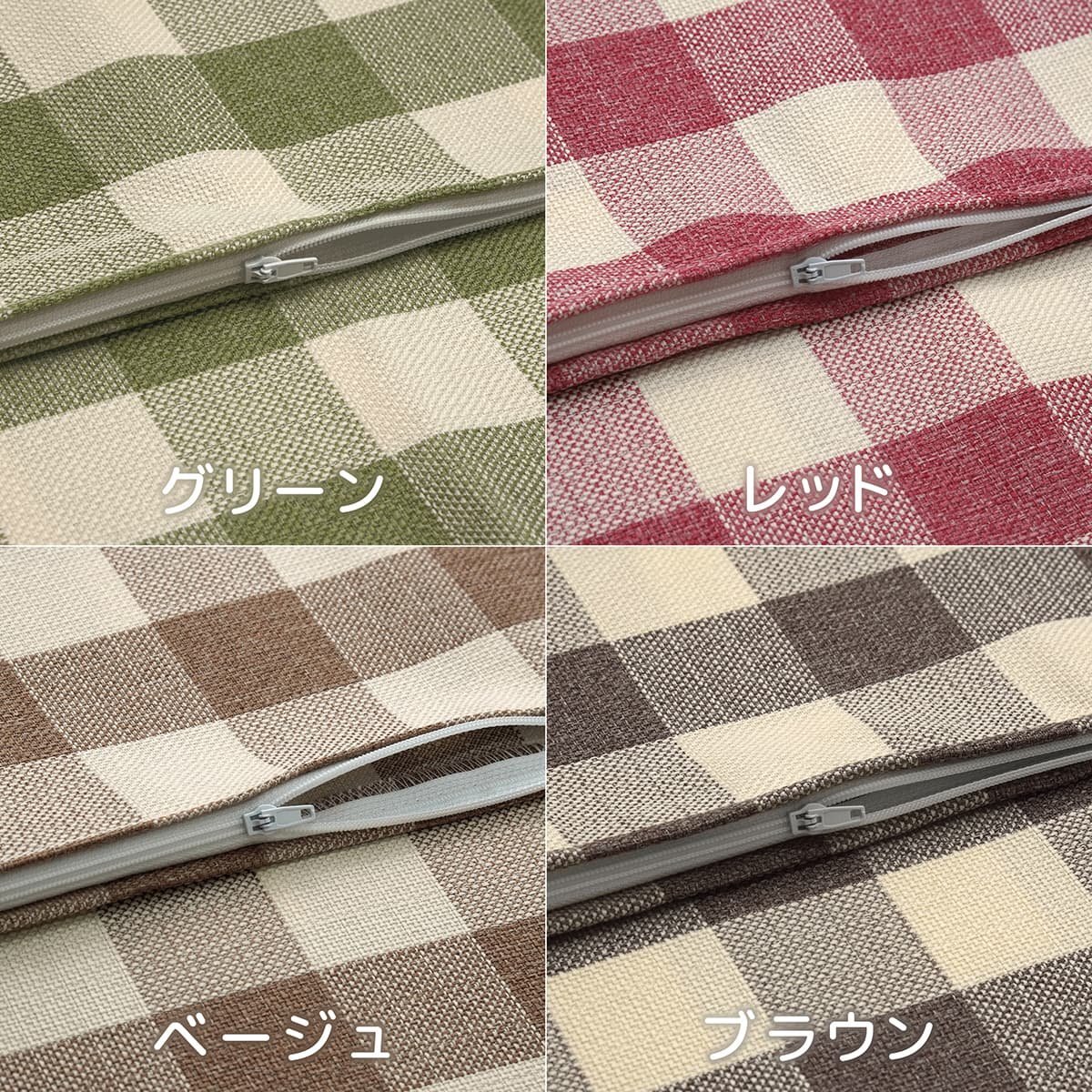 長座布団カバー 約68×120cm 大判 東北判 ナチュラルチェック ブラウン 日本製 約42ミリ幅の格子柄 素縫い 両面共生地 長辺ファスナー