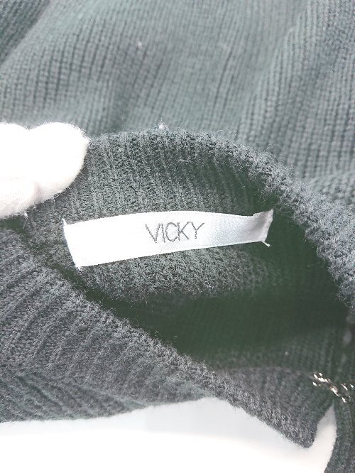 ◇ VICKY 装飾パール 手洗い可 クラシック かわいい 長袖 ニット カーディガン サイズ2 ブラック レディース P