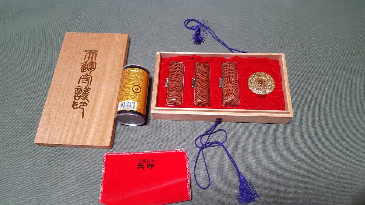 天印 ★ 高級 印鑑 セット 革印鑑ケース 判子 はんこ 工芸 コレクション 希少! ※ 現状・中古品 |