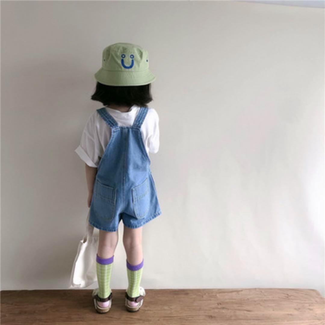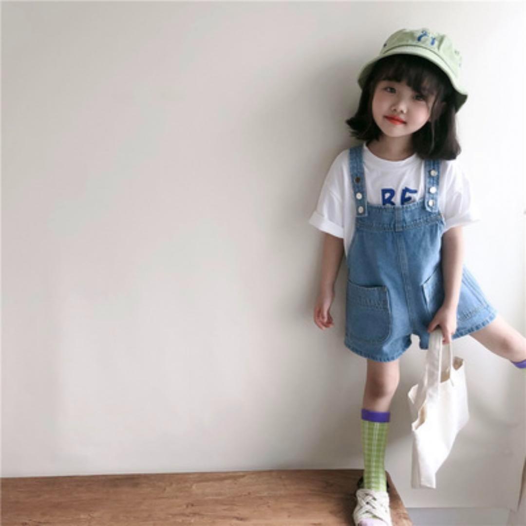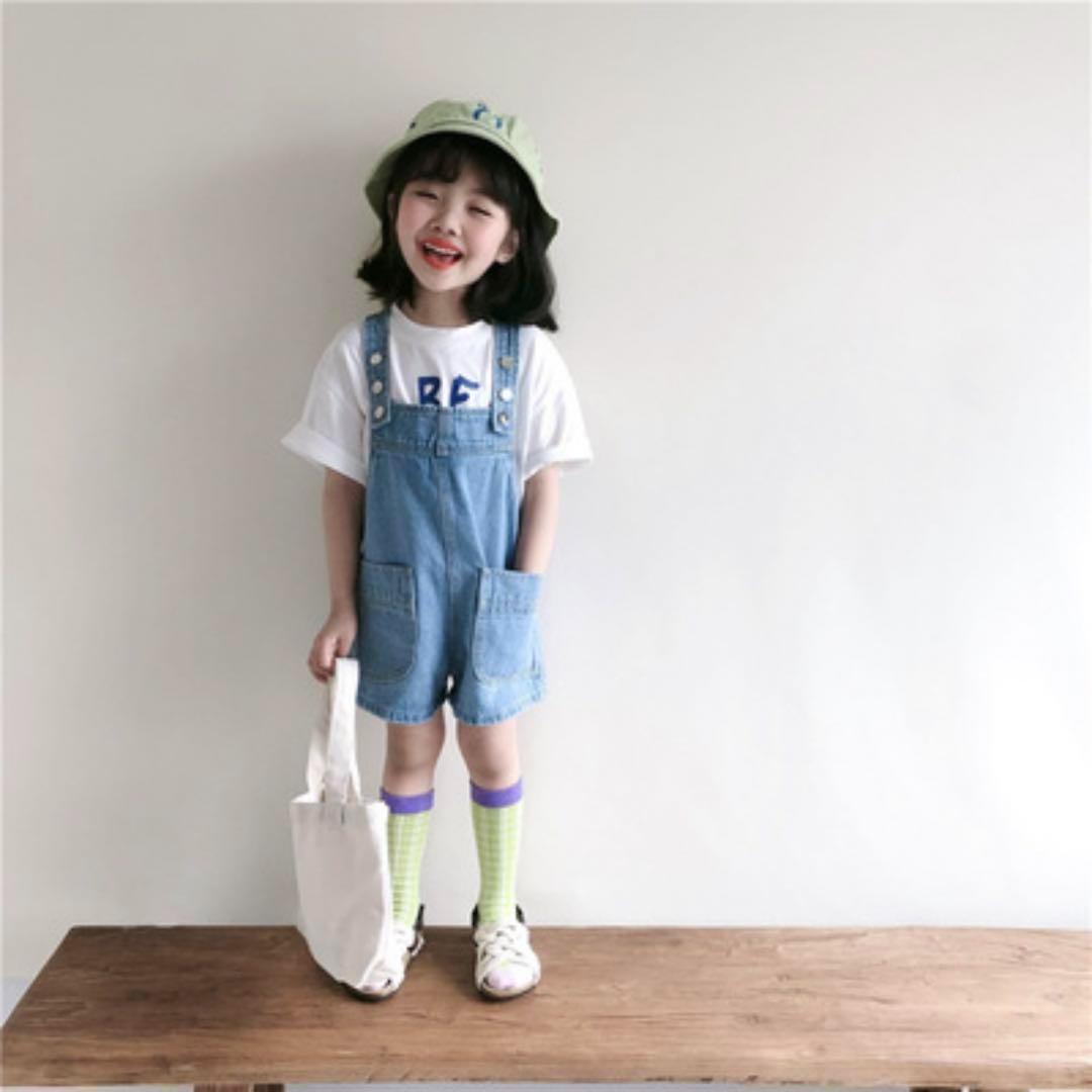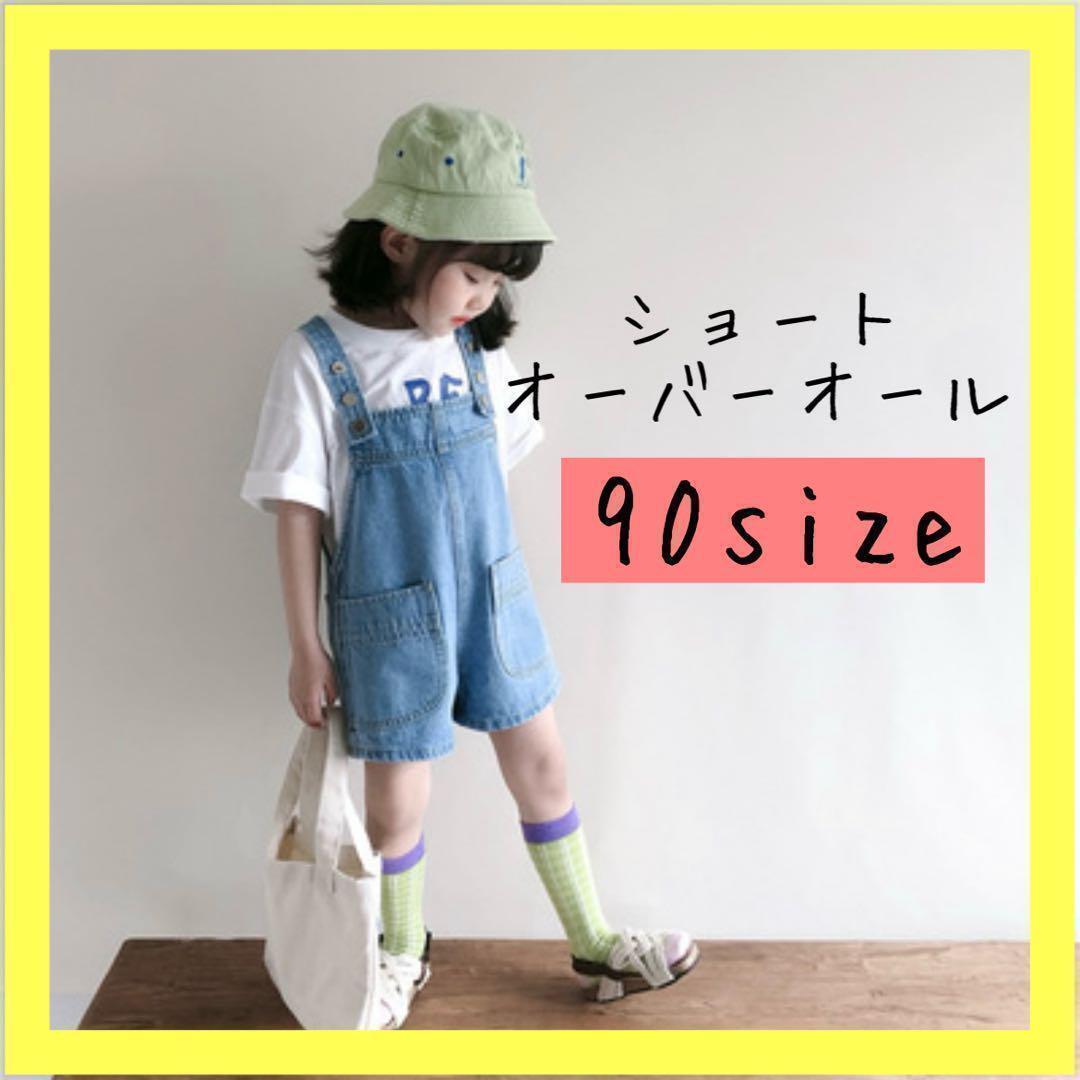 90 サロペット オーバーオール デニム キッズ 夏 ショートパンツ 韓国 ブルー