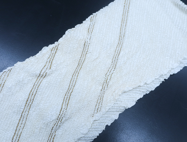 リサイクル商品のため帯揚げに、黄ばみとシボ伸びがございますがご使用頂けると存じます。 |